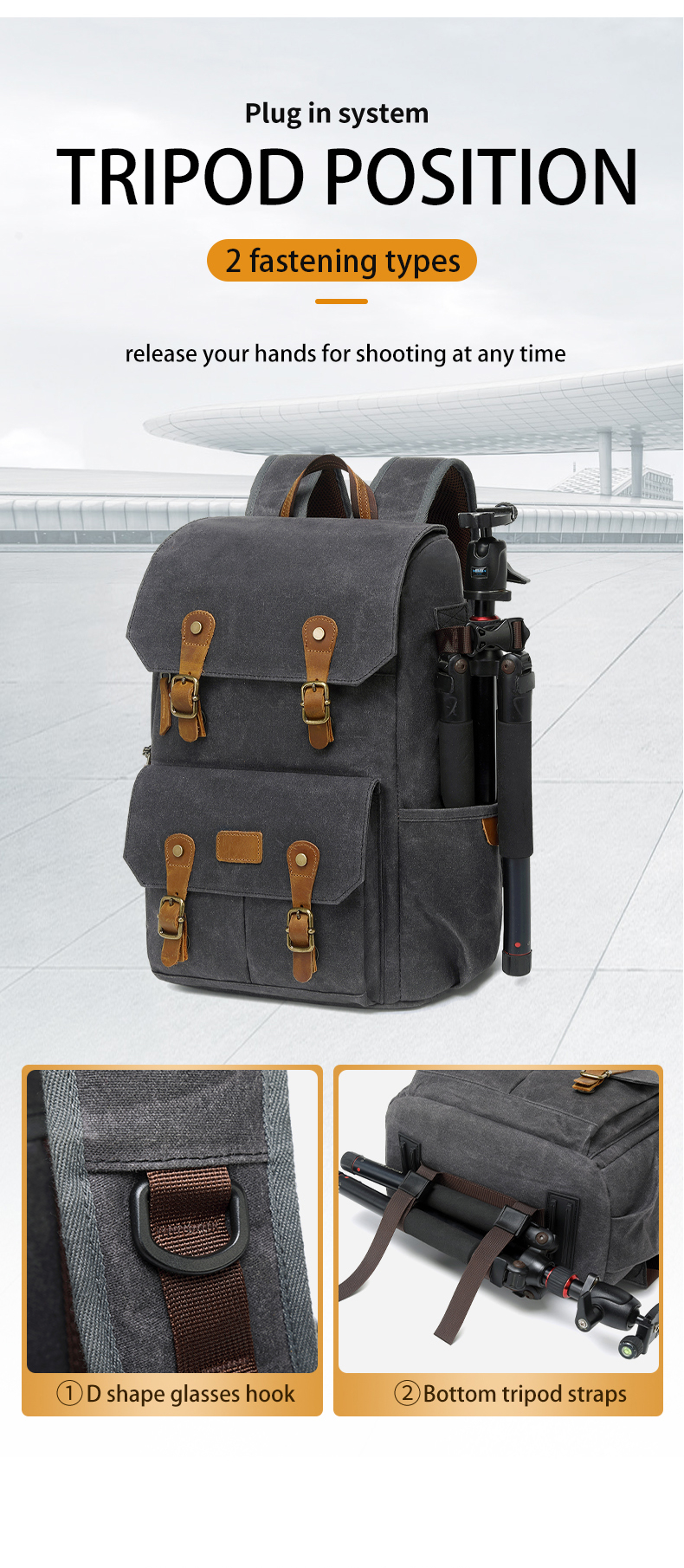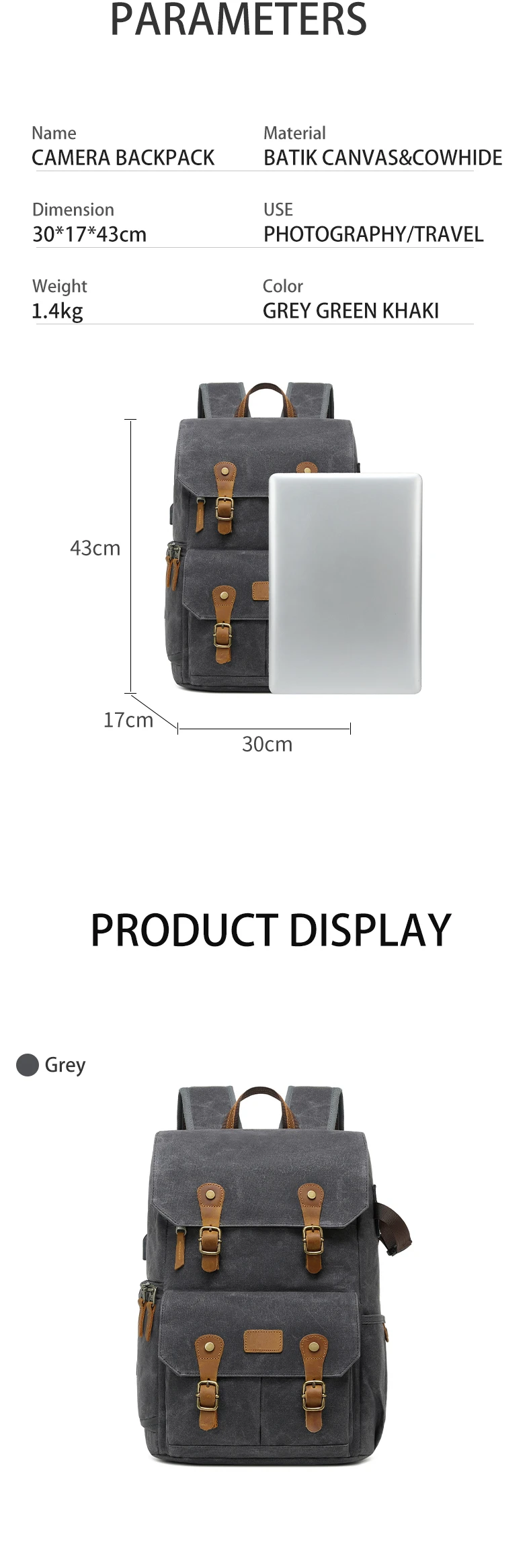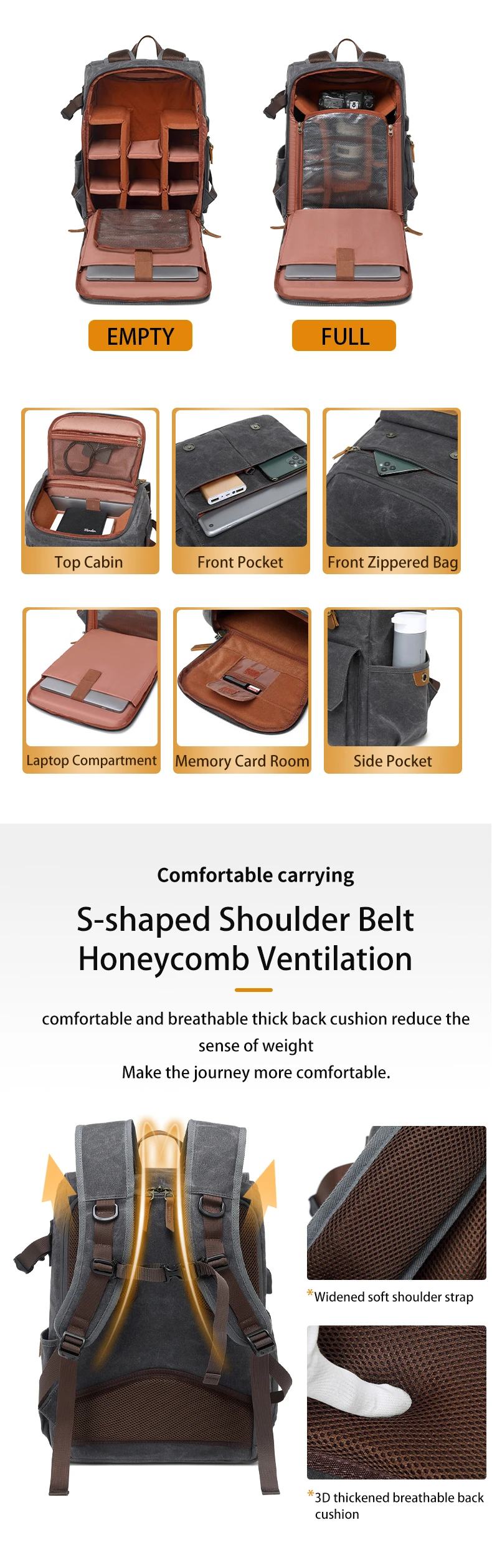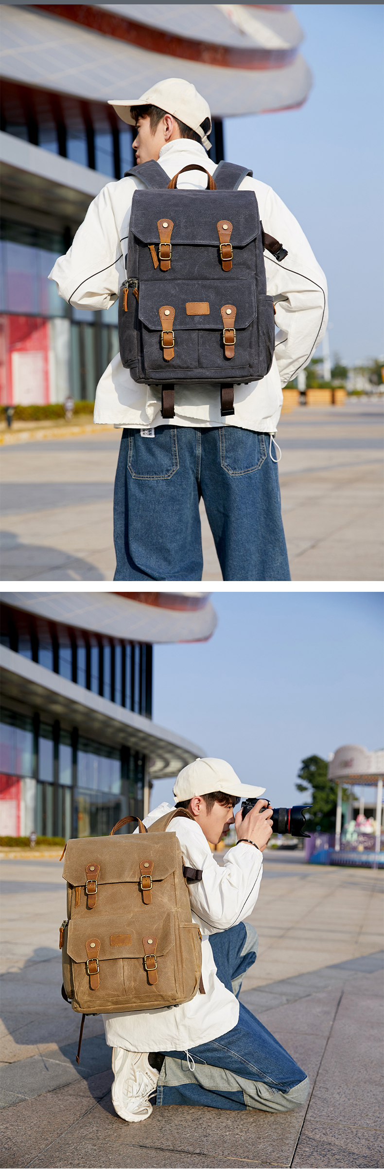 Водонепроницаемый холщовый рюкзак для фотоаппарата в стиле ретро с USB-портом для ноутбука 15,6 дюйма