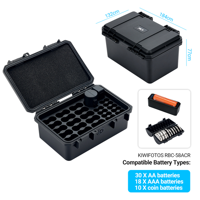 KIWIFOTOS RBC-58ACRBattery Чехол с тестером на батареи-это органайзер, предназначенный для размещения до 30 батареек AA, 18 батареек AAA и 10 батареек для монет (товар в продаже-ТОЛЬКО чехол, батарейки в комплект НЕ входят).