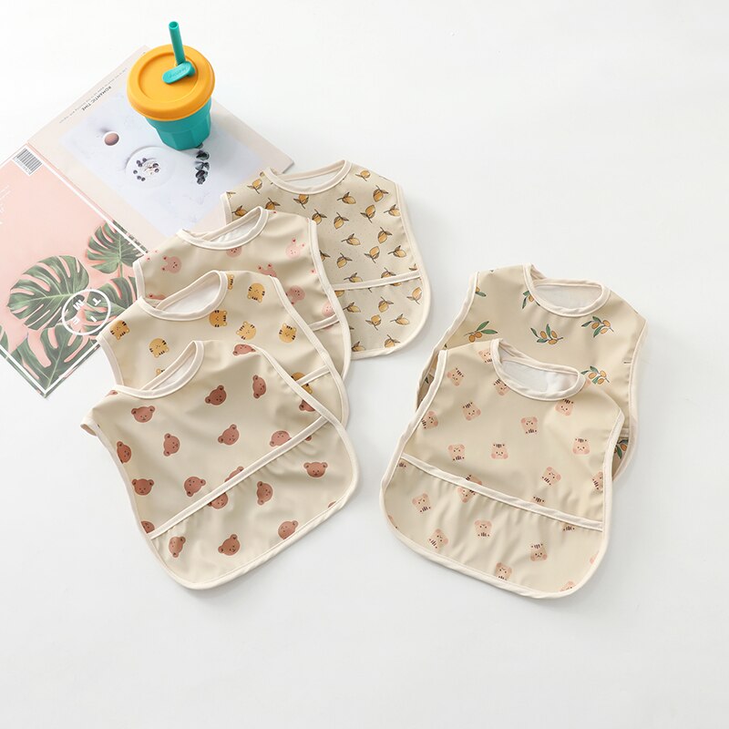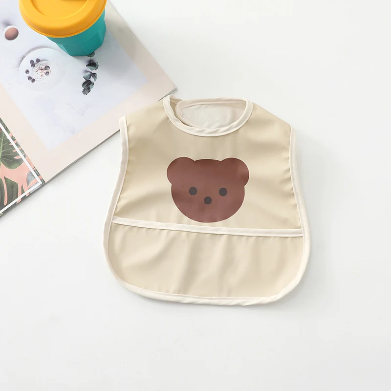 Водонепроницаемый нагрудник без рукавов с рисунком медведя и милые детские нагрудники для маленьких мальчиков и девочек; U-образная одежда для кормления из искусственной кожи