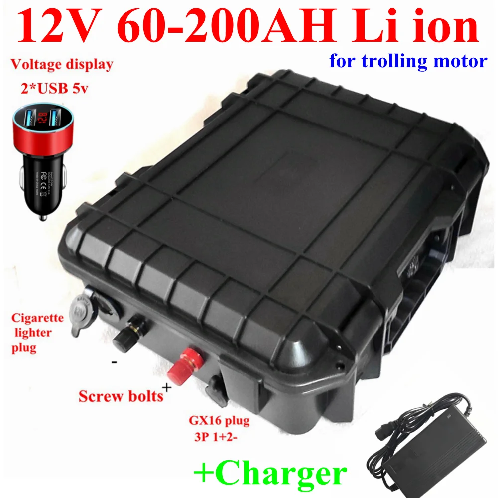 Водонепроницаемый перезаряжаемый литий-ионный аккумулятор 12V 60Ah 80Ah 120Ah 150ah 180ah 200ah для троллинга гребного винта моторной лодки + зарядное устройство 10A