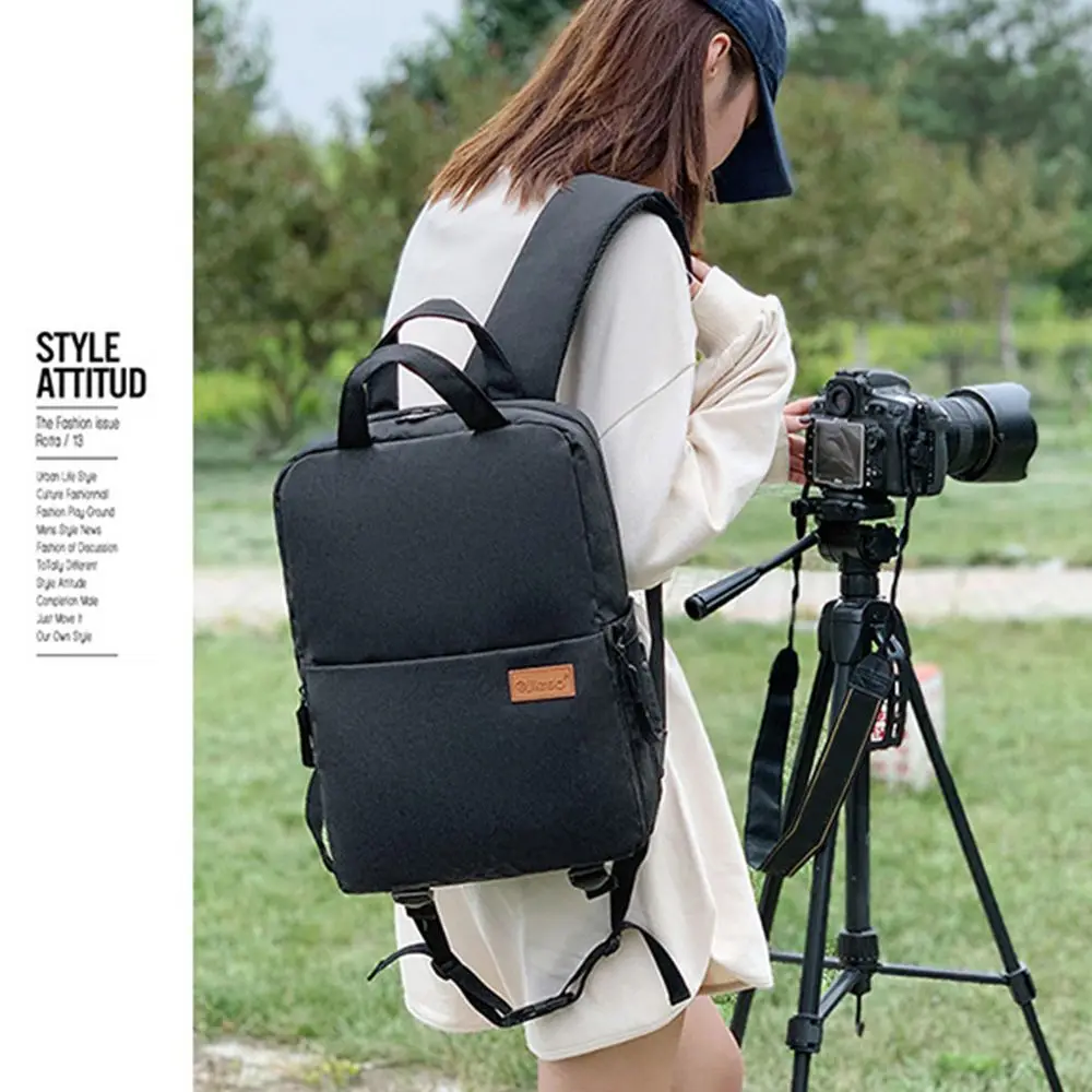 Новинка и высокое качество Название: Многофункциональный рюкзак для камеры Материал: нейлон Внешний цвет: черный, серый, красный Размер: 38*27*13 см Особенности: Элегантный и удобный рюкзак-совместим с большинством DSLR камер. Регулируемые, мягкие разделители позволяют настроить отсеки. Внешний сетчатый карман для аксессуаров или бутылки для воды. Внутренние сетчатые карманы для дополнительных карт памяти и других аксессуаров. Удобные, мягкие на ощупь и бретельки с мягкими лямками гарантируют, что вы будете чувствовать себя комфортно даже в самый длинный путь. Двойная молния для легкого и быстрого доступа. Посылка включает в себя: 1 рюкзак для камеры Примечание: измерения выполнены вручную, приведет к тому, что при ручном измерении; Допускается погрешность в допустимом диапазоне 1-2 см (0,4-0,8 "). Степень водонепроницаемости, Пожалуйста, избегайте попадания воды в воду или долгое время оставайтесь в дождевой шторме.