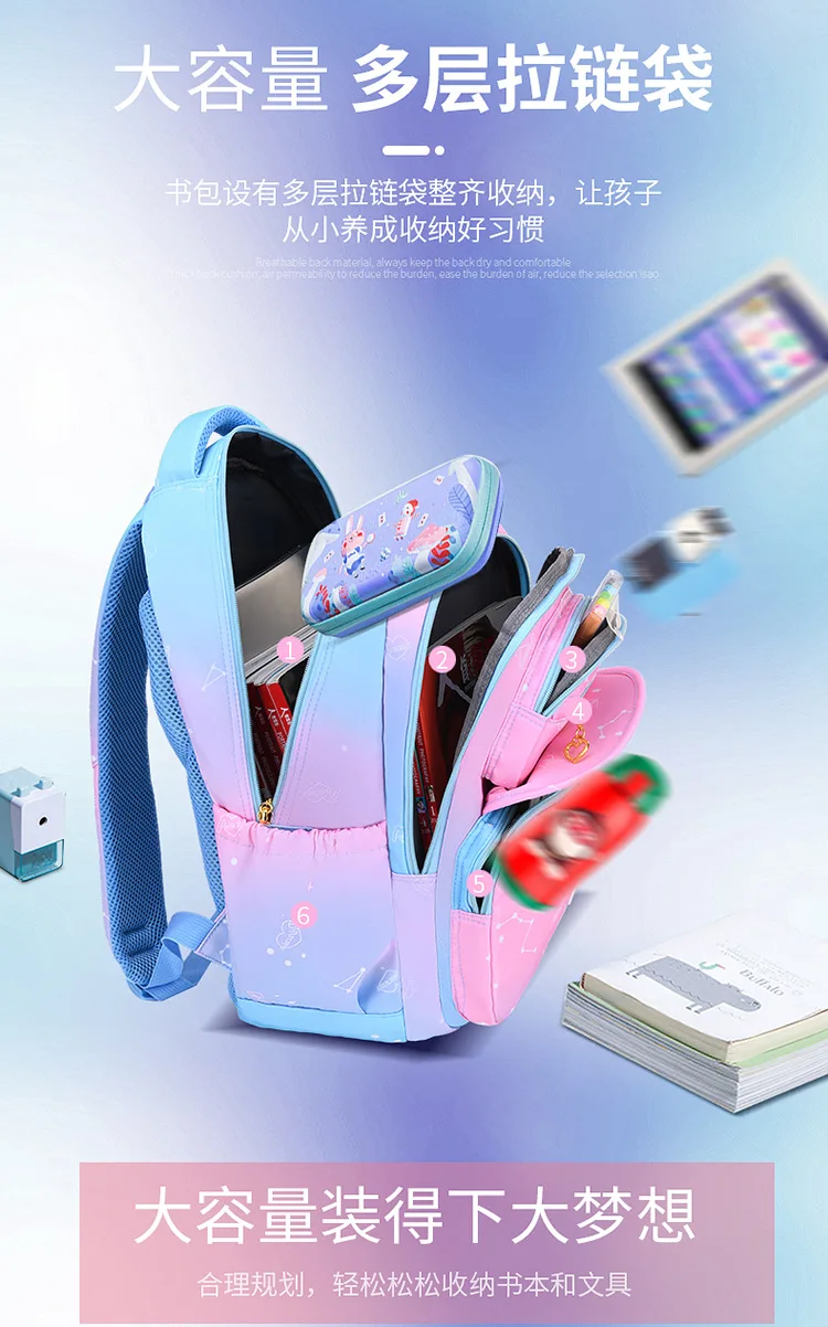 Водонепроницаемый рюкзак из ткани Оксфорд для девочек начальной школы, школьные ранцы розового цвета с милым бантом для детей