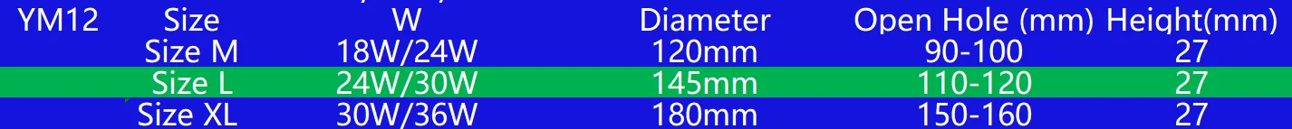 Мощность (соответствующий размер):18W24WD120 мм)
