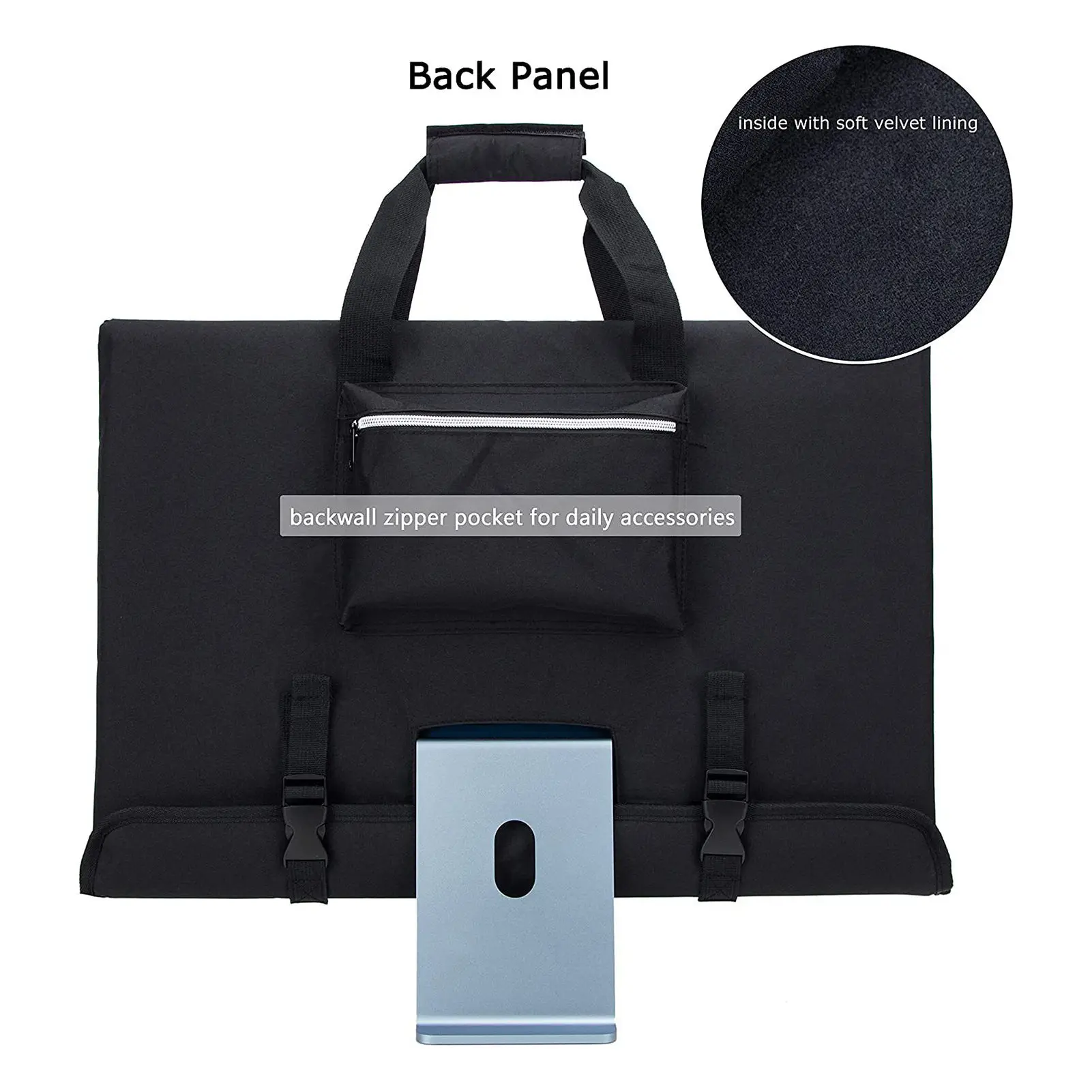 4. Несколько пряжек: есть несколько пряжек на задней части этого компьютера монитора сумка, которая может быть скорректирована, чтобы лучше соответствовать вашему компьютеру.