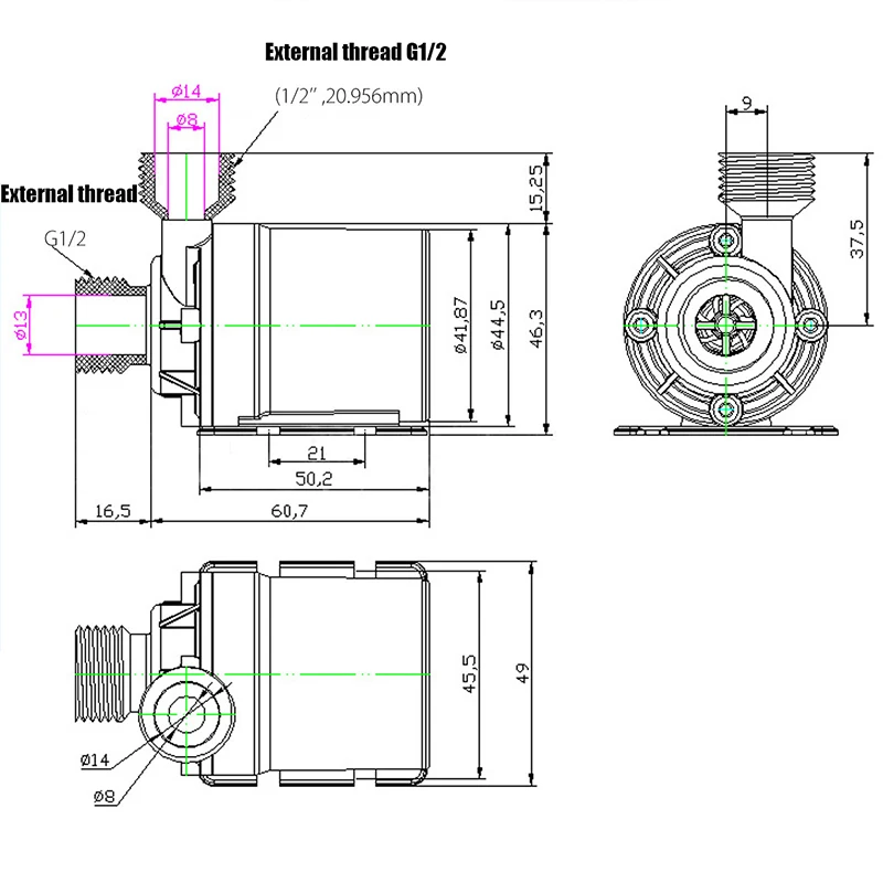 (Примечание: Бесщеточный насос постоянного тока представляет собой центробежный насос, поток воды в насосе с увеличением напора уменьшается. Запрещается погружение без функции самовсасывания, запрещается отсутствие воды.)