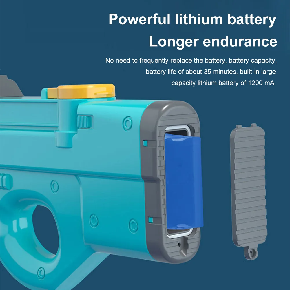 1. Высокое качество:Электрический водяной пистолет P90 изготовлен из выбранного материала ABS, прочного и долговечного, с герметичным колпачком и резиновым кольцом для защиты заправочного носика от утечек.