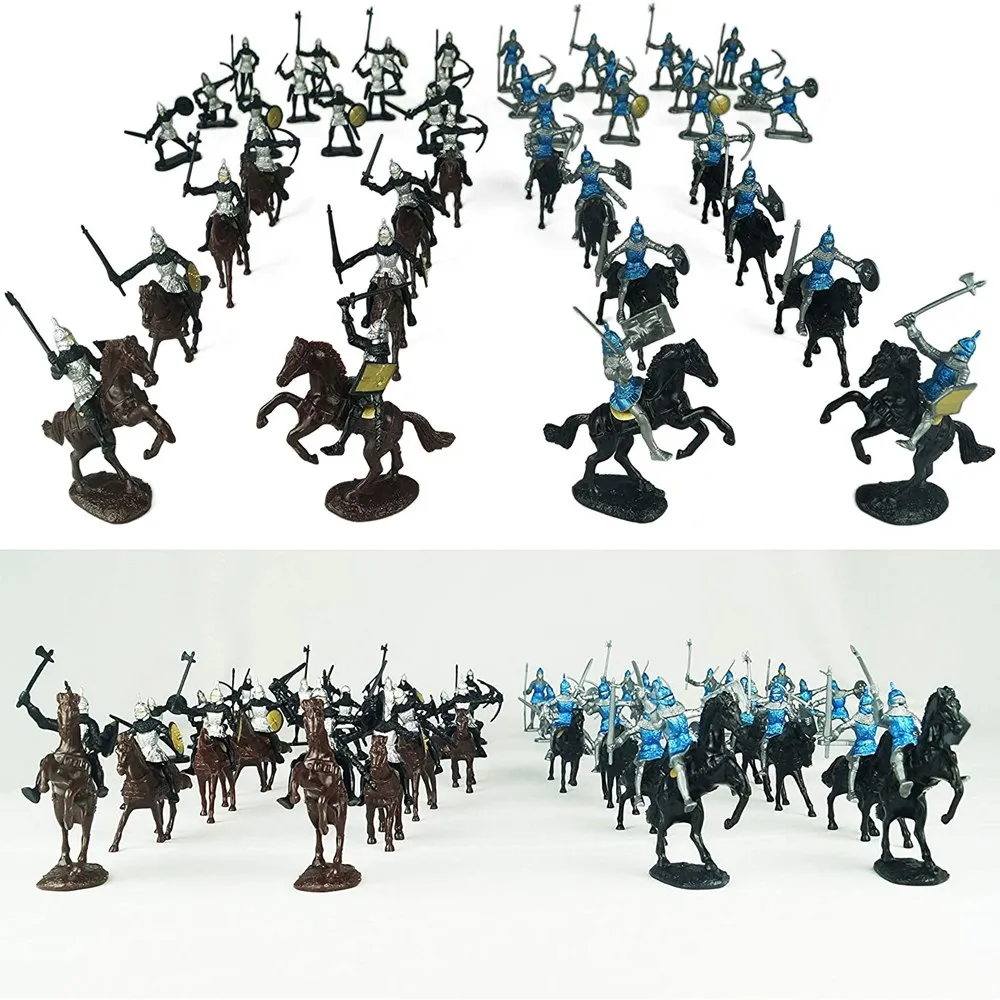 Военные фигурки среднего возраста, пластиковые солдаты, рыцарские лошади, армейские игрушки, набор воинов, средневековая модель, подарок для детей и мальчиков, 56 шт.