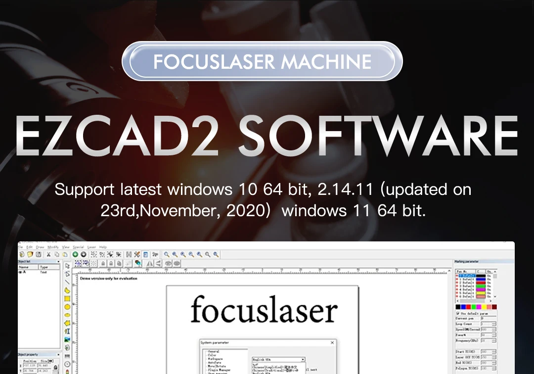 7. Программное обеспечение EZCAD2: гибкое и мощное программное обеспечение посылка идеально подходит для гравировки и совместимо с большим спектром современных решений для обработки изображений, таких как QR-коды и штрих-коды. Программное обеспечение поддерживает поддержку последней версии Windows 10 64 бит, 2.14.11 (Обновлено 23 ноября 2020), совместимой с файлами CorelDraw, такими как. ПЛТ,. Ай,. ДХФ,. ДСТ,. Svg, . Nc,.G, Gbr , . Jpc и файл изображений, такой как:. Bmp, . Jpg, . Jpeg, . Gif, . Png, . Тиф,. Tga и т. д. Поддерживает все языки: английский, французский, немецкий, корейский, арабский, португальский, японский, русский, испанский, бразильский, Мексиканский, итальянский и т. д.