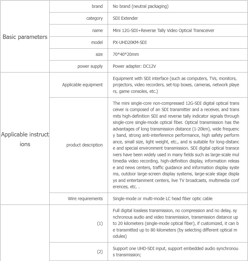 Волоконно-оптический кабель SDI 3G, 6 г, 12 г, 4 к, 60 Гц