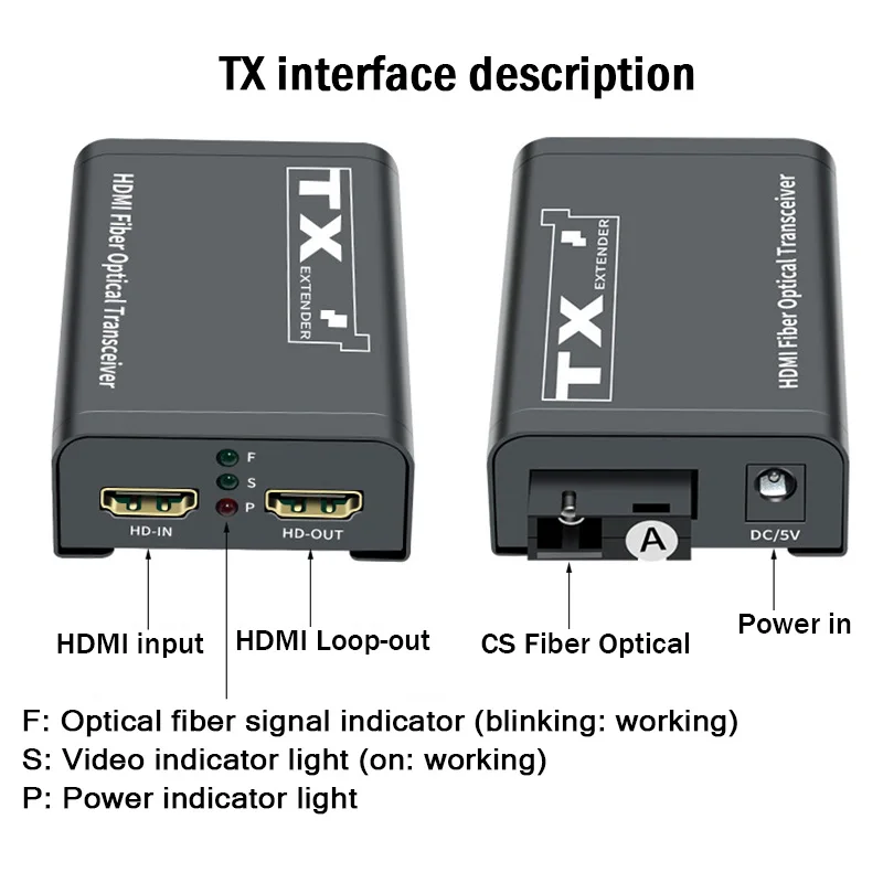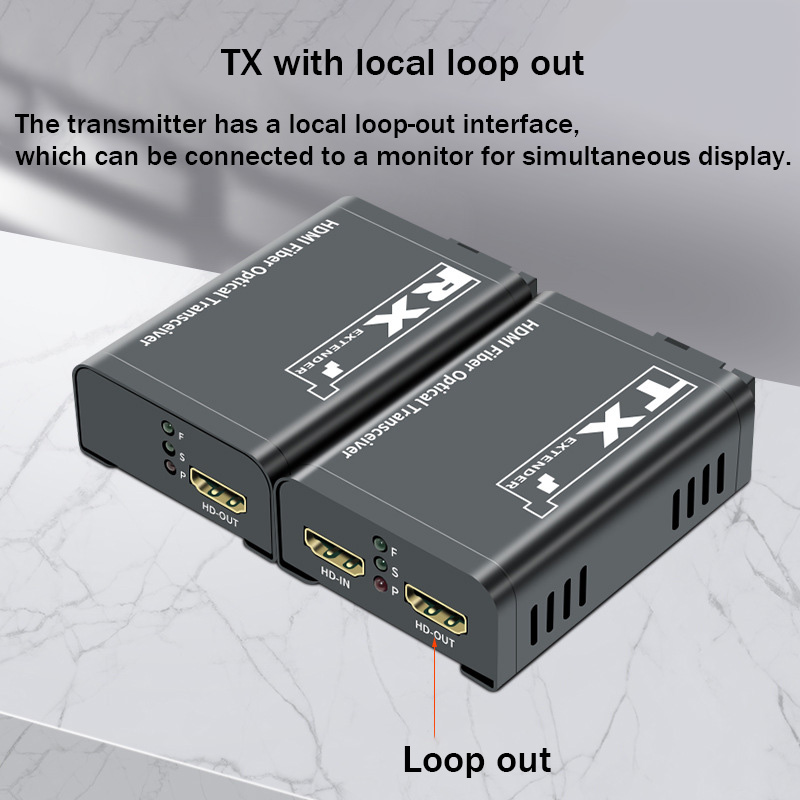 Удлинитель обеспечивает Расширение HDMI-совместимых сигналов на большие расстояния по одному волокну, он поддерживает выход петли.