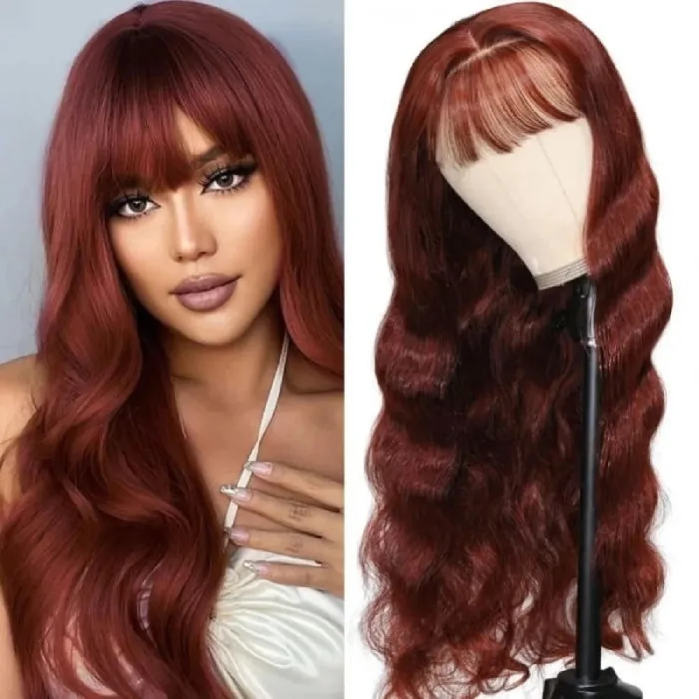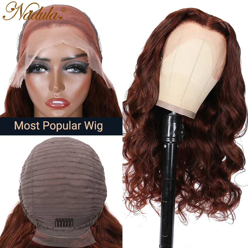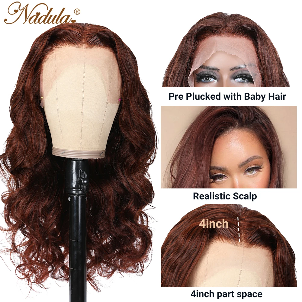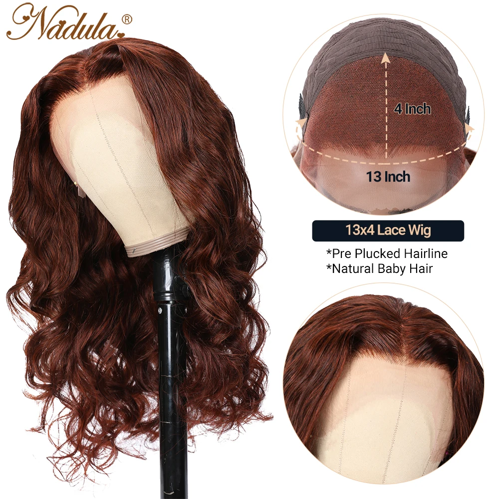 Волосы Nadula 33B, красновато-коричневые, волнистые, кружевные передние парики 13x 4, парики из человеческих волос на сетке спереди с челкой, предварительно выщипанные Детские волосы