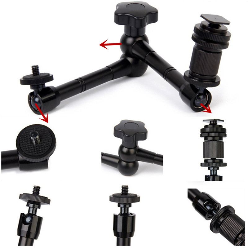 This is a professional 7"/11" articulating arm perfect for LED light, LCD monitor or flash light etc. on cameras. This precise and durable designed magic arm with locking control knobs to release or enlarge the tension which can give all position movement. This articulating magic arm simplifies the mounting, placement and adjusting any on-camera lightings and other accessories.
