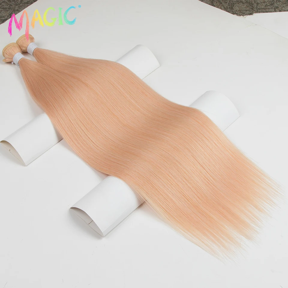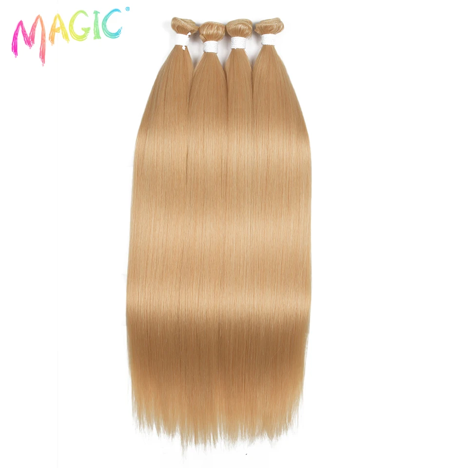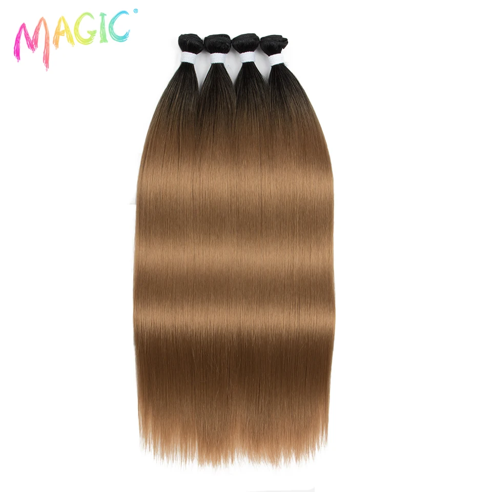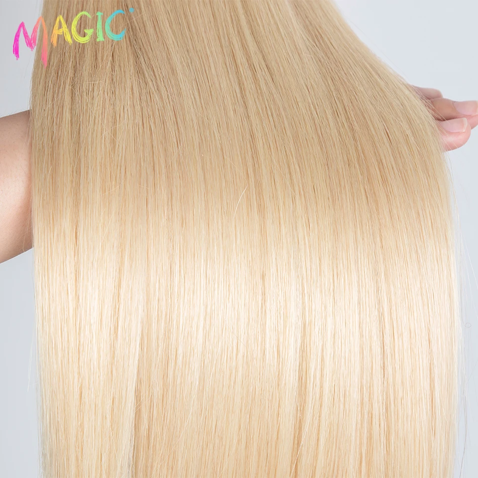 Волшебные супер длинные прямые волосы для наращивания Омбре блонд пучки волос Мягкие синтетические волосы 24 дюйма натуральные волосы для женщин