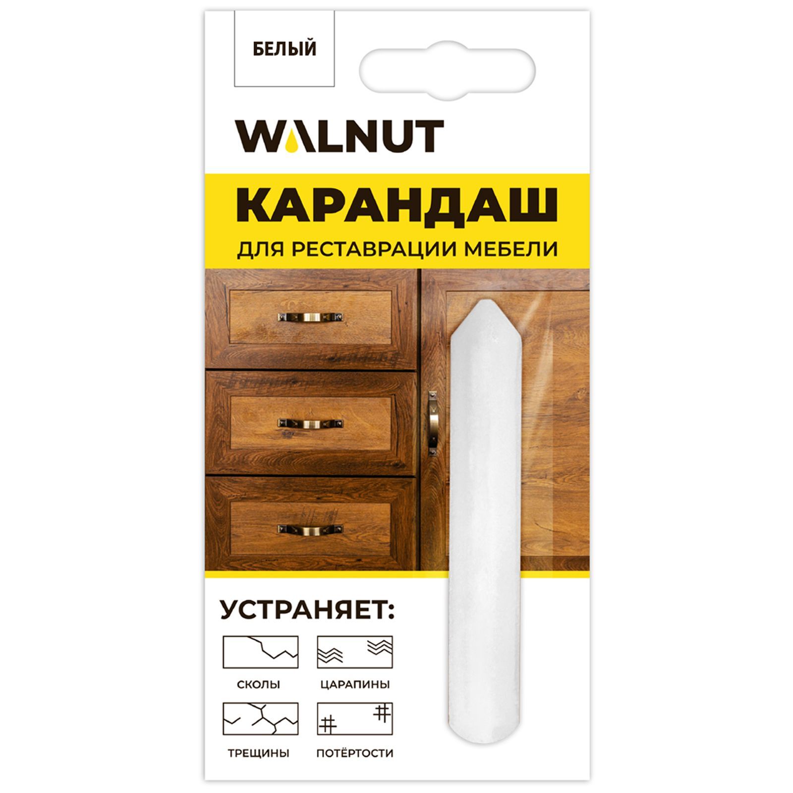 • МАРКЕРЫ • Текст при отключенной в браузере загрузке изображений• ОЧИЩАЮЩИЕ И ДЕЗИНФИЦИРУЮЩИЕ СРЕДСТВА • ОПИСАНИЕ ТОВАРАВосковый карандаш предназначен для реставрации мебели, окон, дверей, изделий из дерева, пластика. Карандаш для мебели для заполнения маленьких и небольших дефектов на деревянных и ламинированных поверхностях, не подверженных интенсивной эксплуатации. Как пользоваться восковым карандашом: 1) Надавливая на карандаш, затереть повреждение быстрыми круговыми движениями; 2) Отшлифовать реставрируемую поверхность при помощи ткани; 3) Удалить излишки средства шпателем или спиртосодержащей жидкостью. Срок годности: не ограничен. Вес: 5,7 грамм.