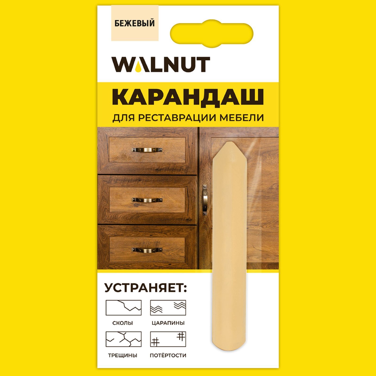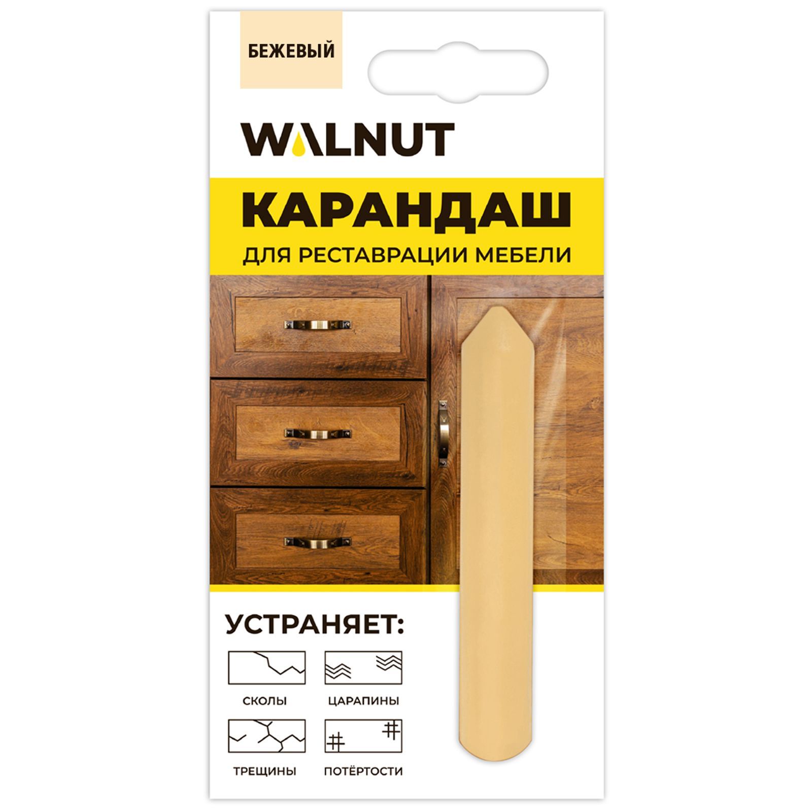 Восковый карандаш для мебели, ламината, дерева, пластика - Воск для мебели, бежевый