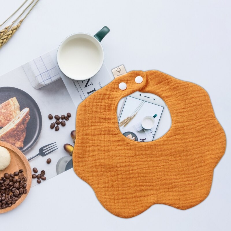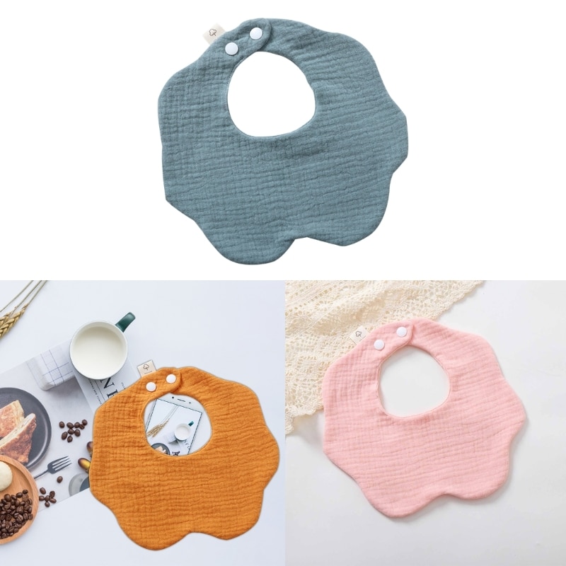 Однотонный хлопковый нагрудник, круглая шея на 360 градусов, нейтральный гендерный узор, могут легко подходить для разных младенцев.