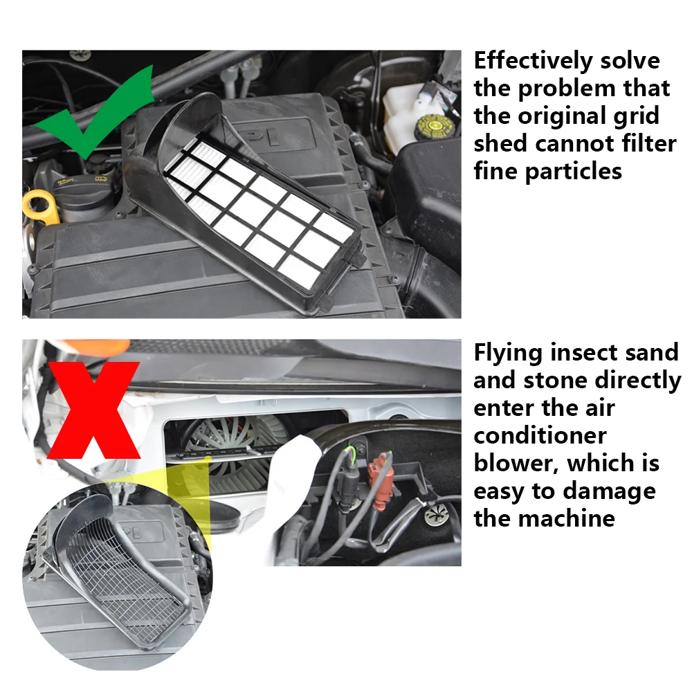 Внешний фильтр кондиционера: на самом деле, многие автомобили нет, в том числе Volkswagen и Audi, но мы разработали специально для высокой загрязненной среды за пределами фильтра, и Volkswagen по-прежнему не улучшение в данный момент, оригинальная машина в пасть вентилятора с черным забором, Это устройство может фильтровать только большие листья примесей и тому подобное, не может фильтровать пыль и вредные газы, вентиляторы подвергаются в течение длительного времени снаружи, вентилятор над пылью неизбежно адсорбирует примеси, как только воздух будет влажным, лопасти вентилятора выше грязи будет дегенерировать, плесень, В результате резкого запаха и вредных газов, и теперь мы разработали этот внешний фильтр, основанный на принципе производства двойных фильтров Audi, простой в установке, простой и эффективный вентилятор защиты, фильтруйте вредные вещества в воздухе для достижения эффекта двойного фильтра, автомобиль станет высококачественным воздухом, Вентилятор для кондиционирования воздуха не будет часто ходить на уборку.