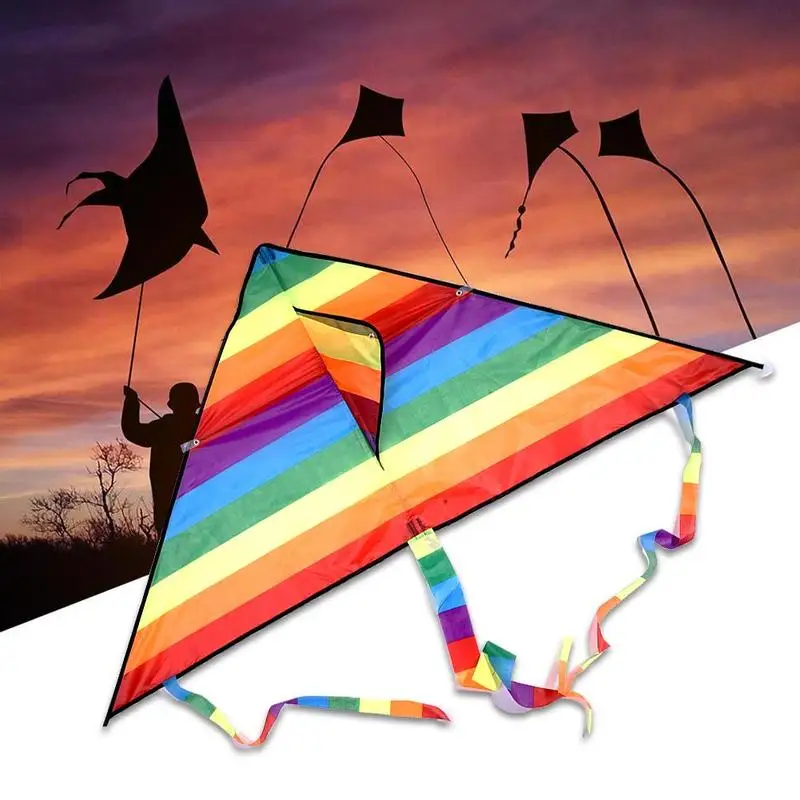 Радуга Цвет Треугольник Воздушный змей Длинный хвост Полиэстер Наружные воздушные змеи Летающие игрушки для детей Трюковый серфинг Воздушный змей с панелью управления и линией