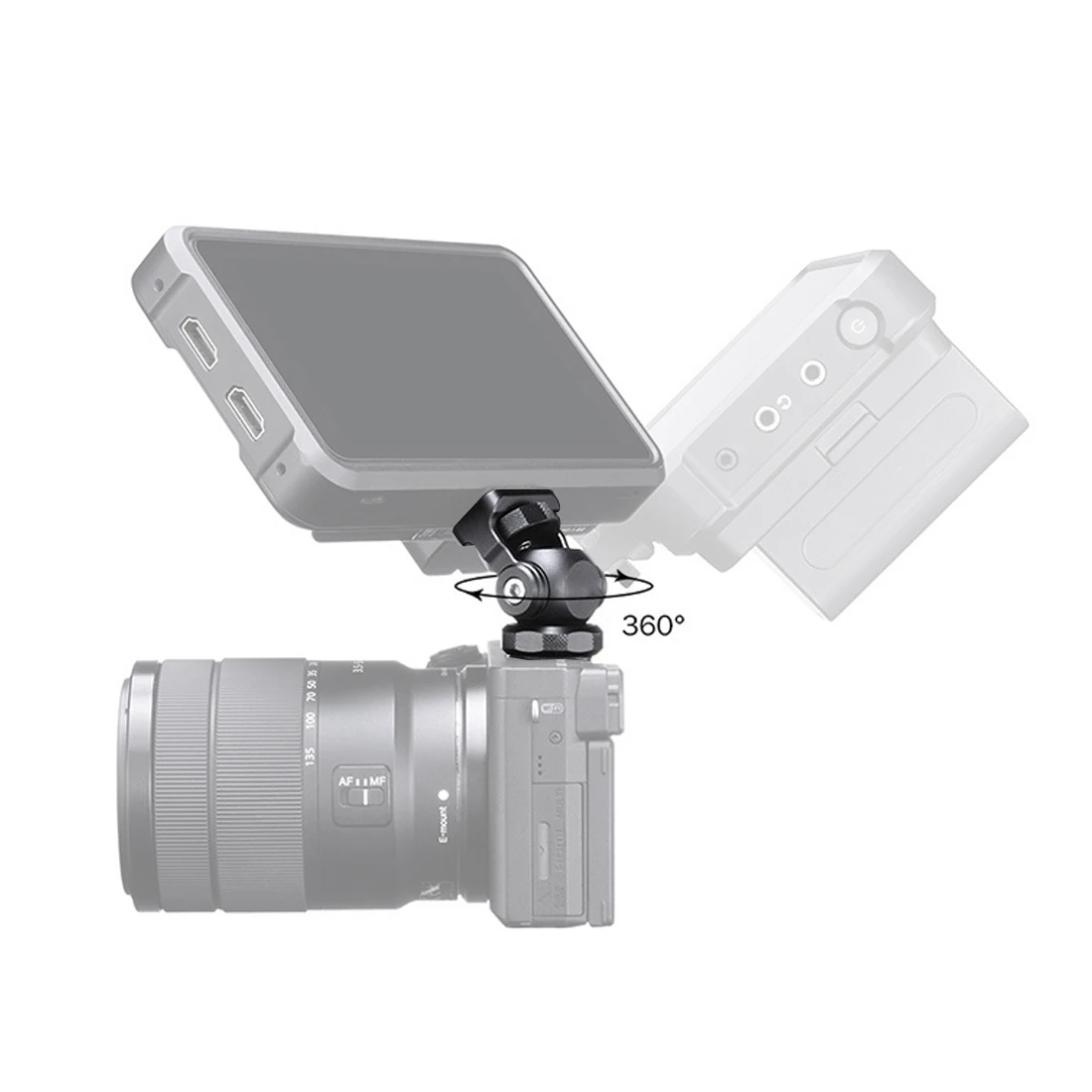 Держатель для монитора поворотный Поворот на 360 градусов наклон на 180 градусов Регулируемый с креплением для холодной обуви и 1/4 ''винтовой кронштейн для штатива