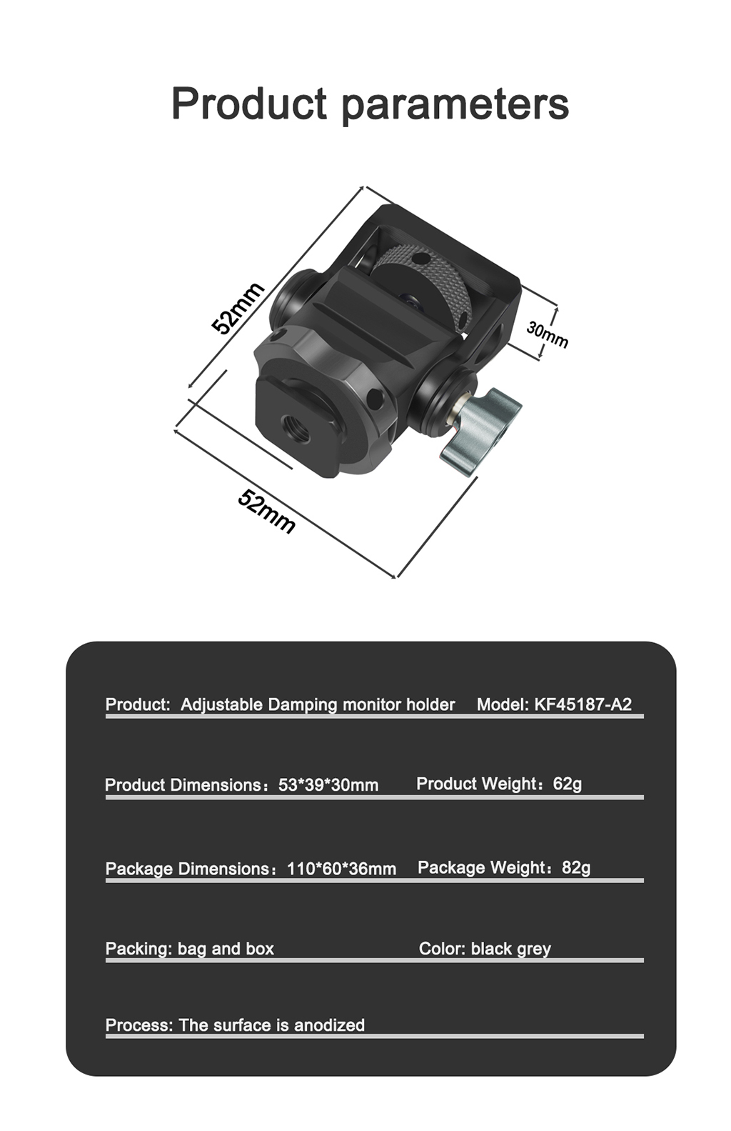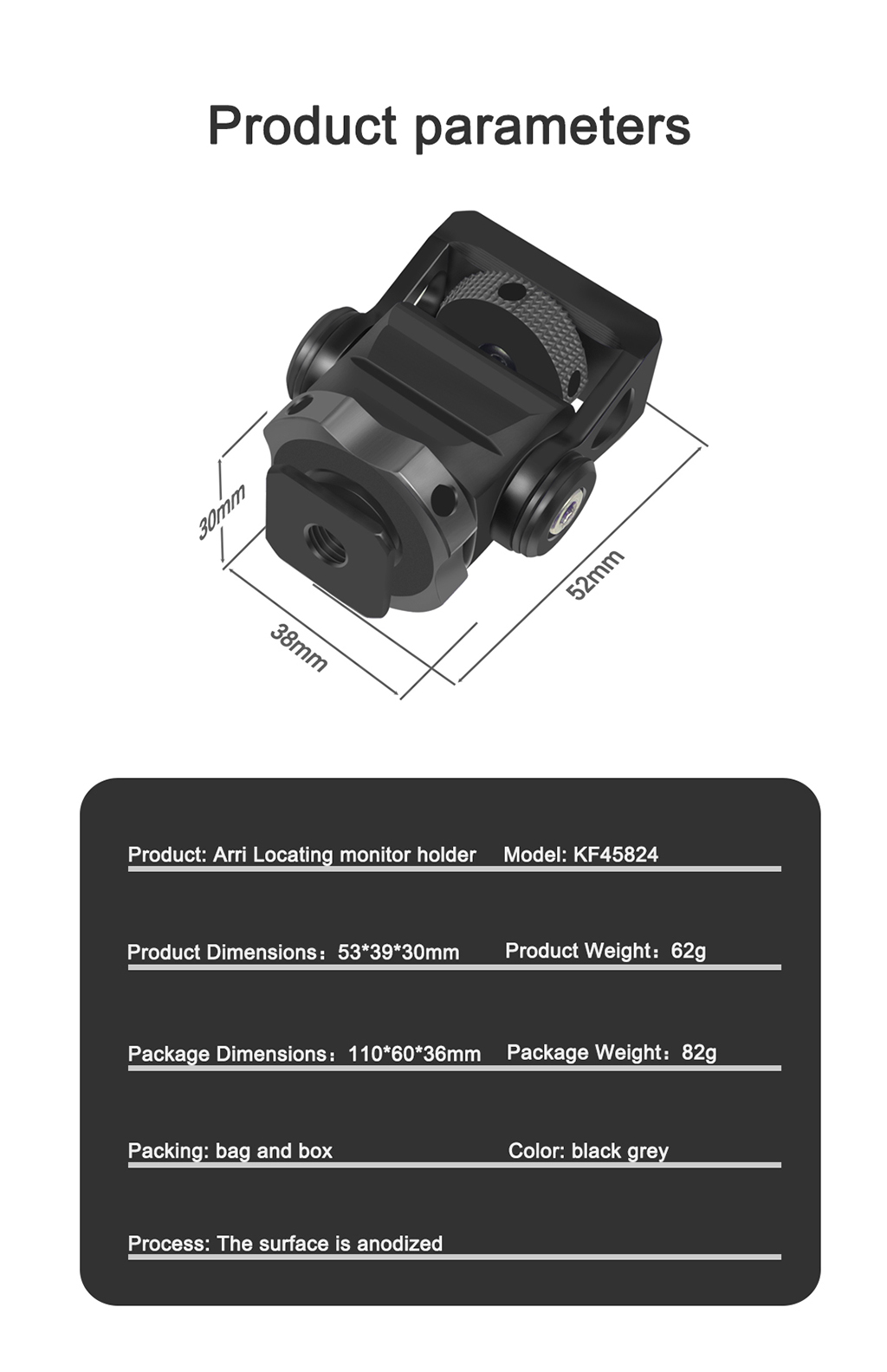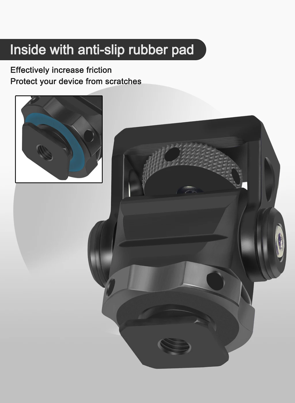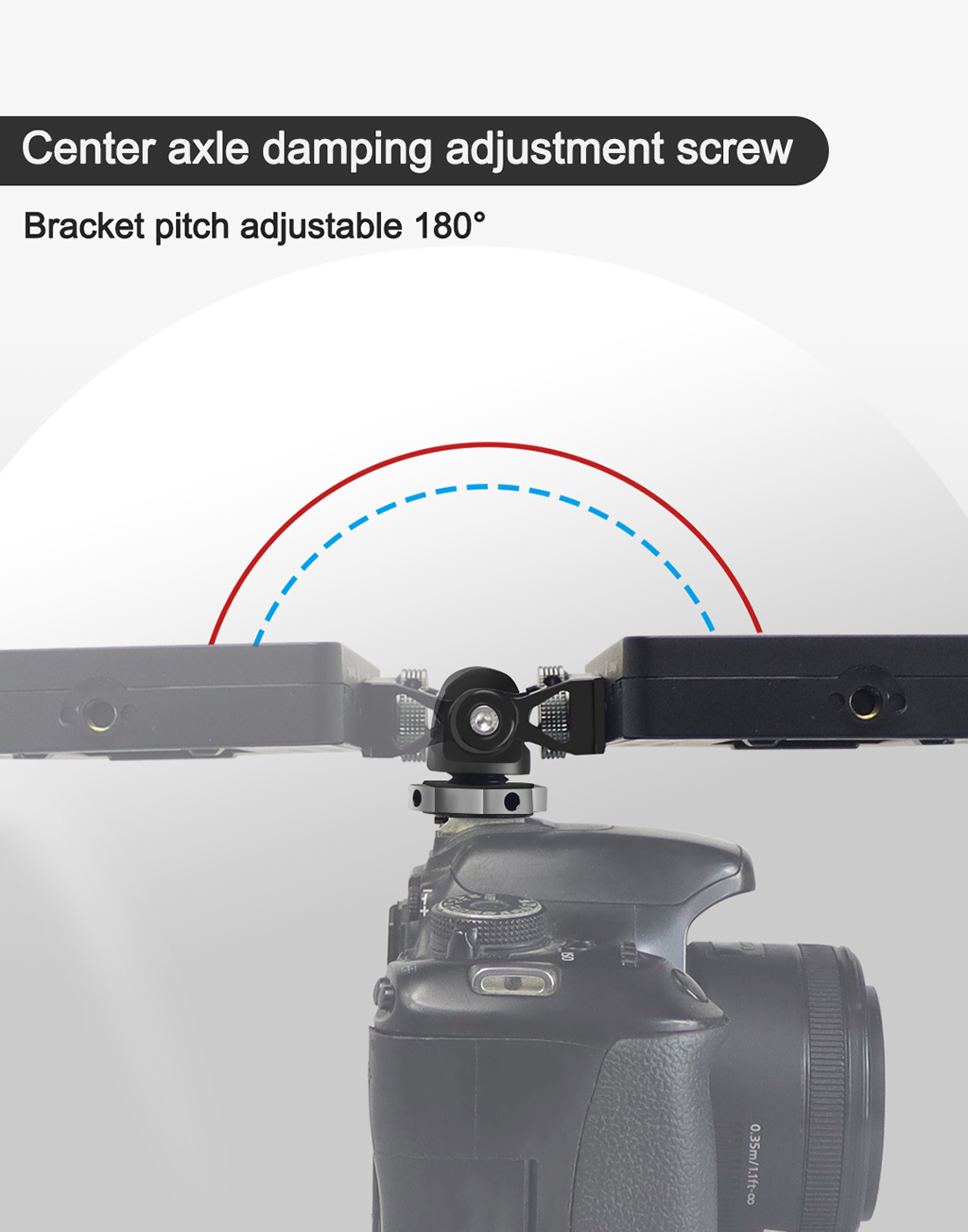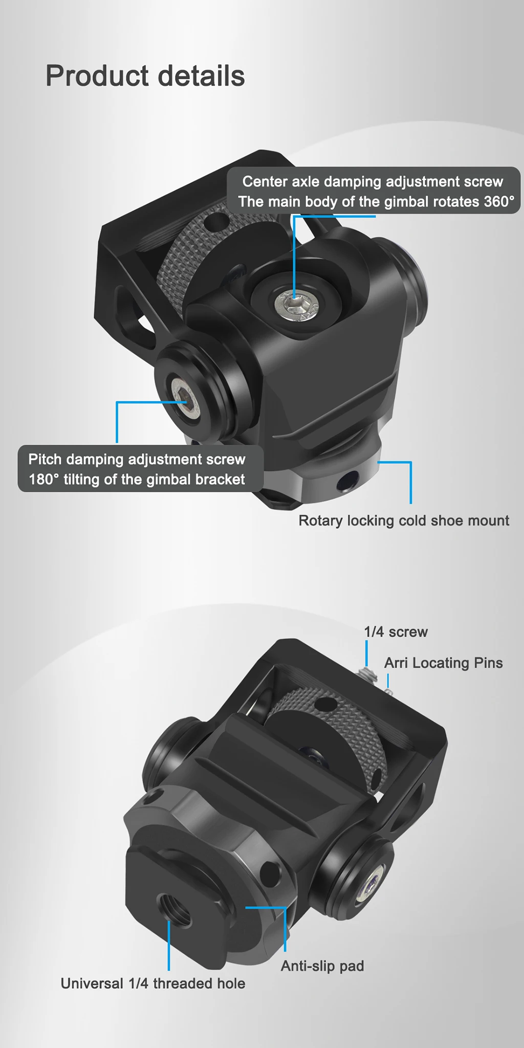 • Он имеет винт 1/4 ''сверху, совместим со многими устройствами, такими как монитор, вспышка, микрофон и т. д.