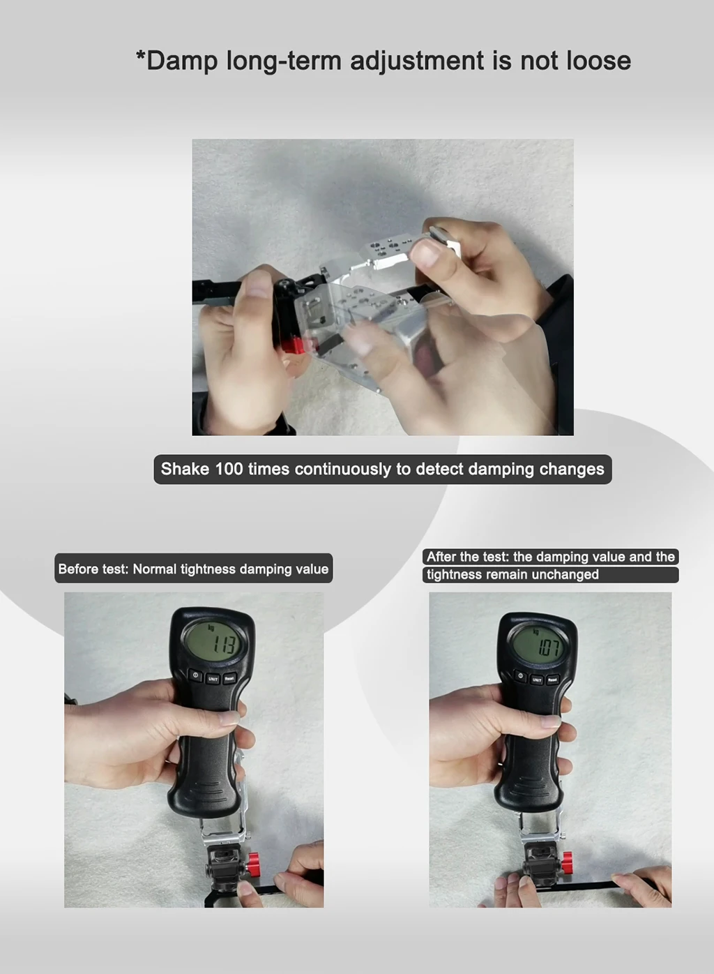 • Поставляется с гаечным ключом для регулировки демпфирования крепления, предлагая многонаправленную поддержку светильник или мониторинг.