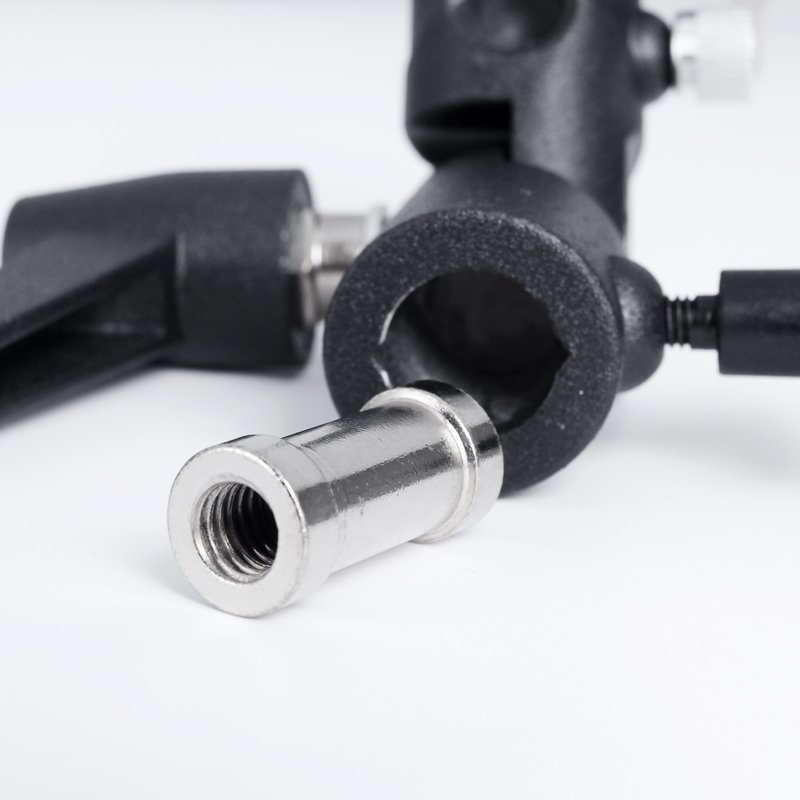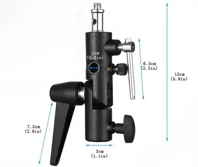 Этот флеш светильник может поворачиваться 180 градусов, этот продукт поставляется с 1/4-3/8 конверсионный винт, 1/4-3/8 женский винт преобразования, так что эта флеш-база может работать с любым светильник стойки и штативы.