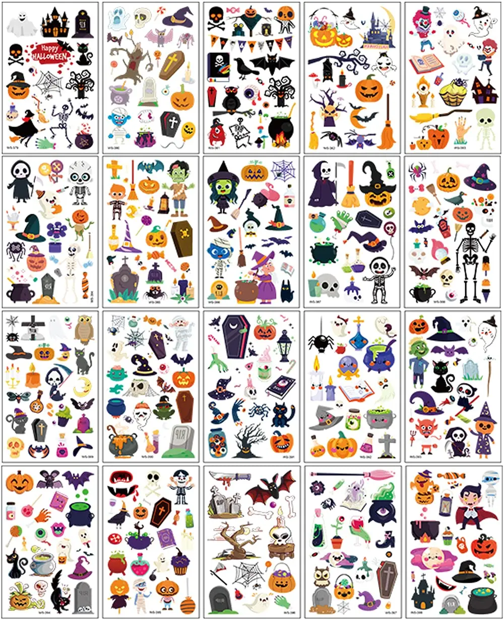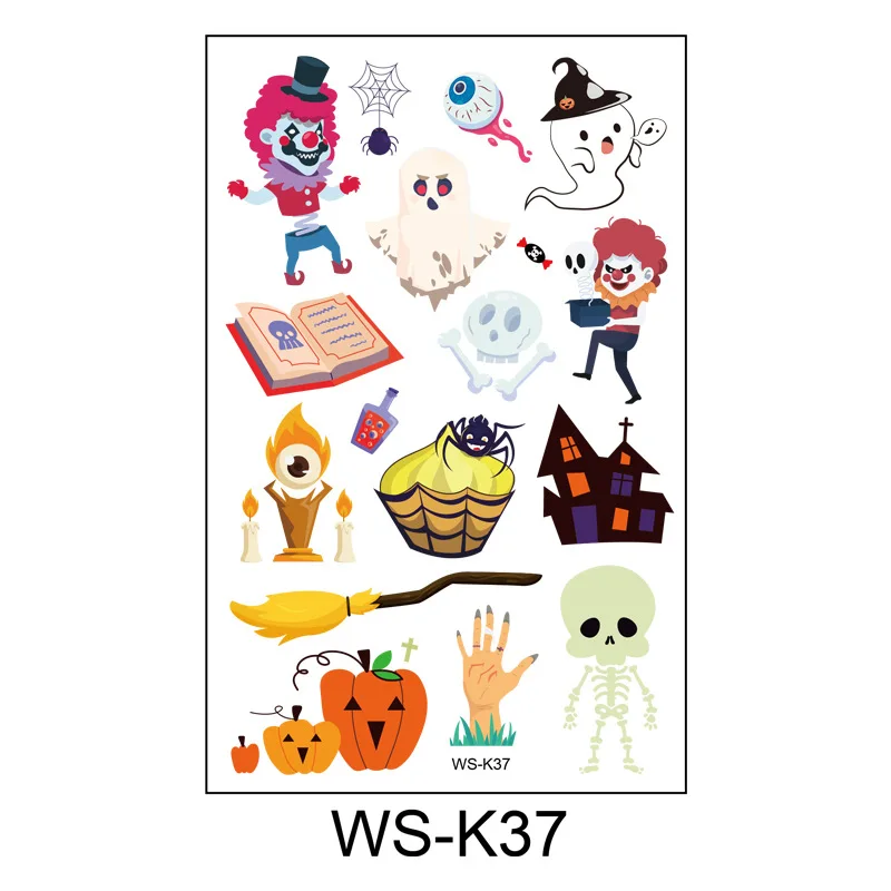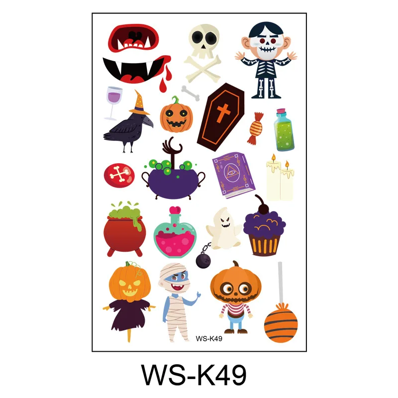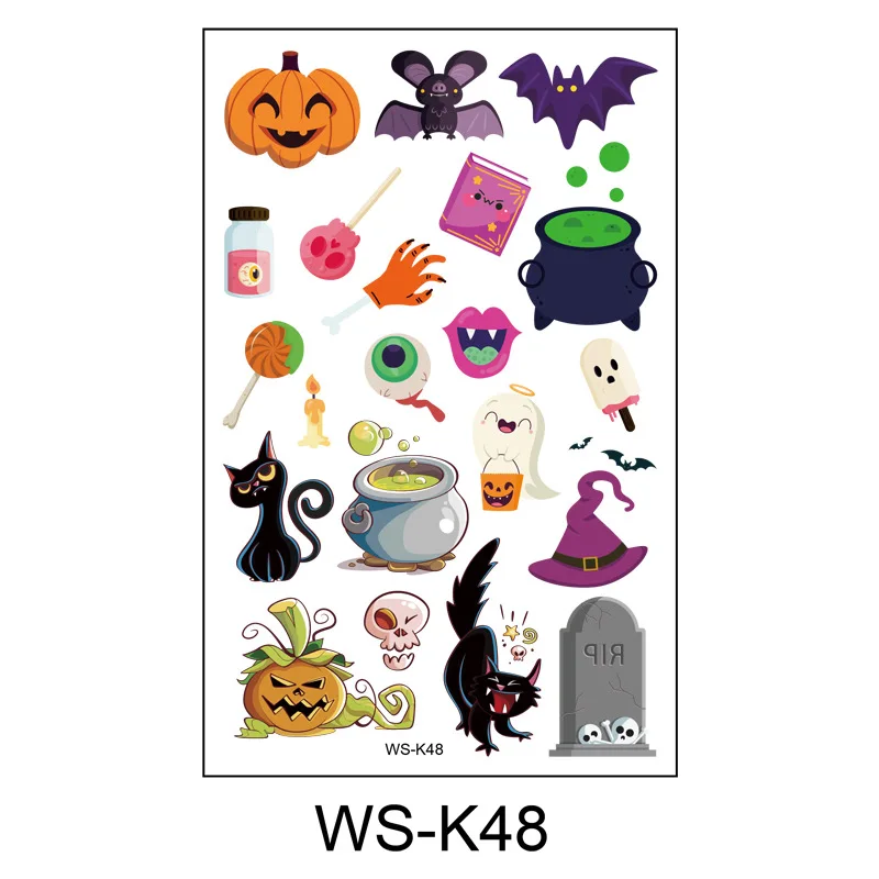 Временные татуировки на Хэллоуин для детей, наклейки на лицо на Хэллоуин, водонепроницаемые, милый мультфильм, поддельное тело, макияж, декор для вечеринки