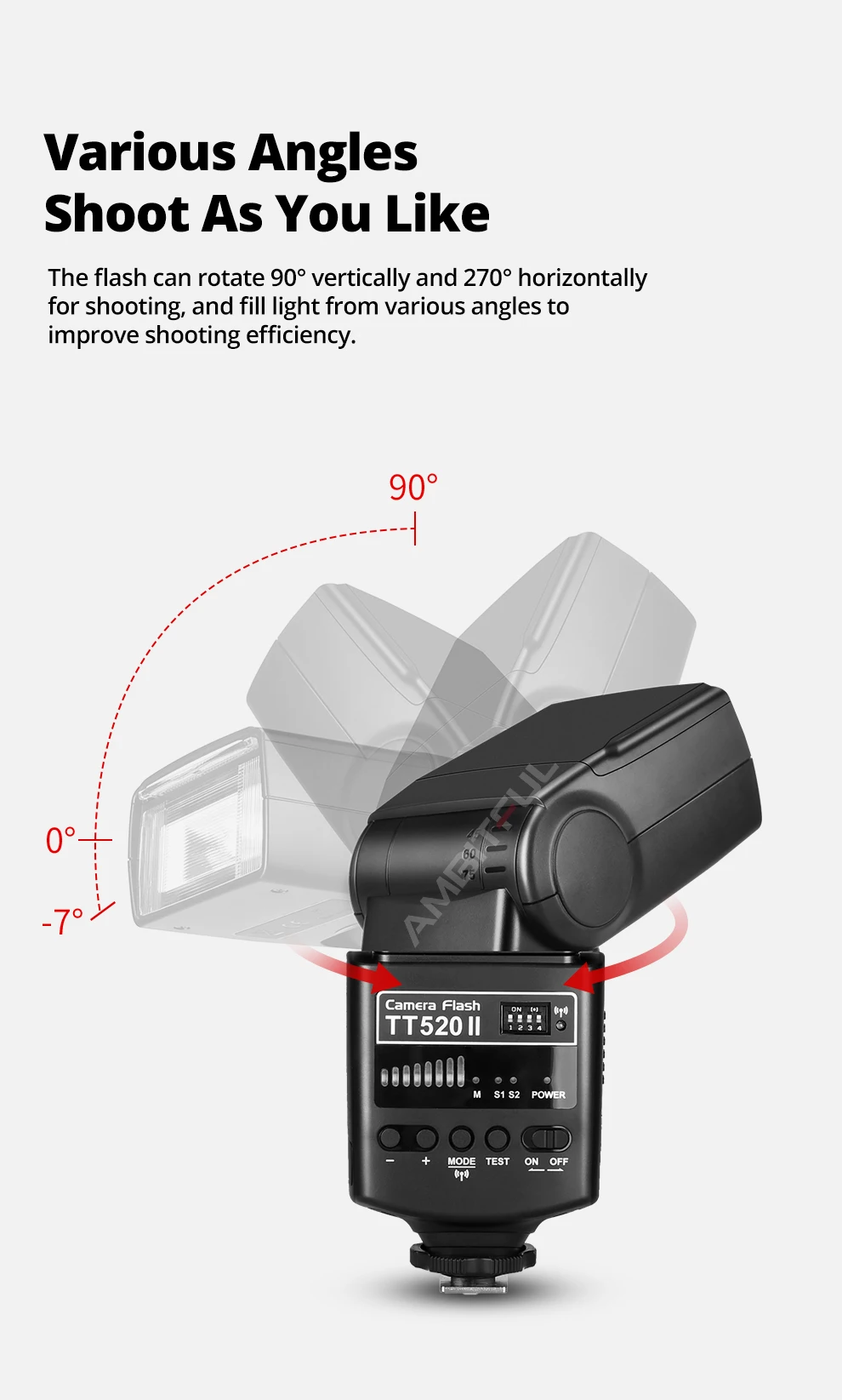 Благодаря встроенному беспроводному сигналу эта вспышка Godox Thinklite TT520II поддерживает функции беспроводного запуска, которая подходит практически для всех DSLR камер со стандартным горячим башмаком.