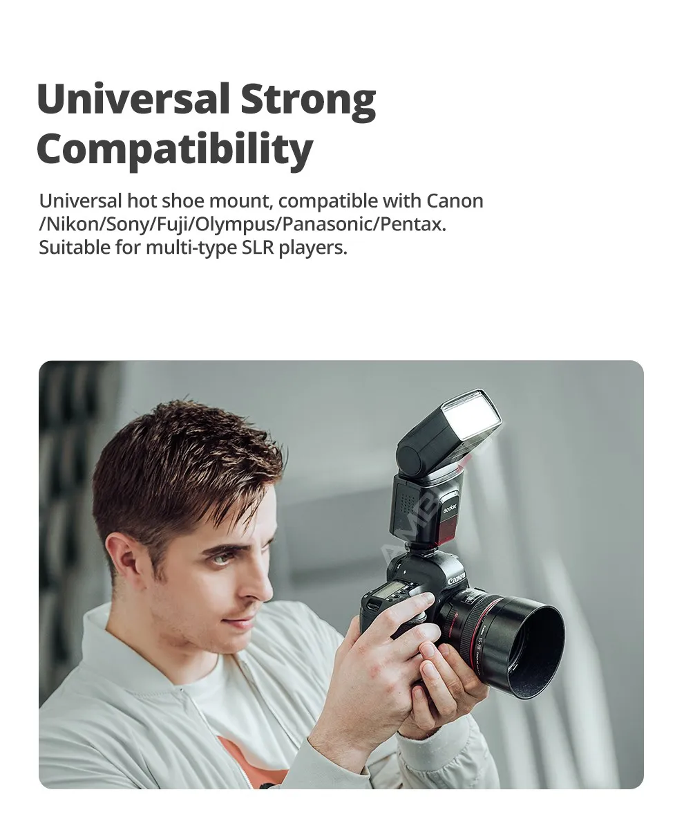 Благодаря встроенному беспроводному сигналу эта вспышка Godox Thinklite TT520II поддерживает функции беспроводного запуска, которая подходит практически для всех DSLR камер со стандартным горячим башмаком.