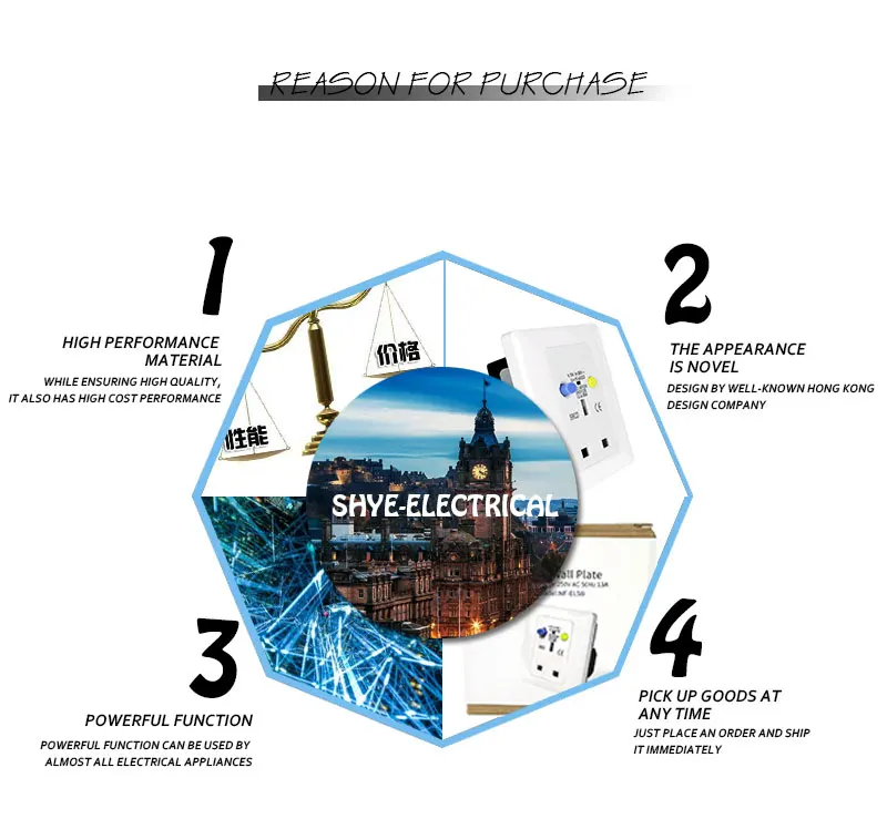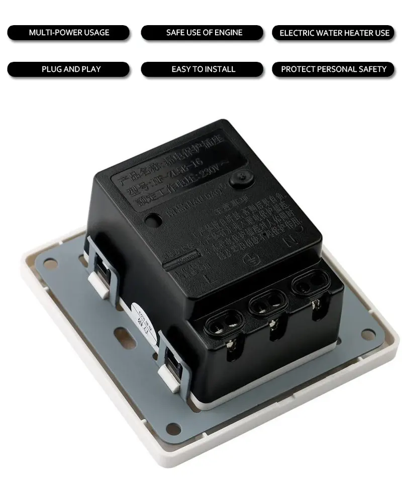 Настенные розетки безопасности УЗО имеют дополнительную защиту от поражения электрическим током. Он обнаруживает ток утечки и прерывает питание в течение 100 миллисекунд при возникновении тока утечки. Идеально подходит для защиты бытовой техники от повреждений и опасных пиков тока 。