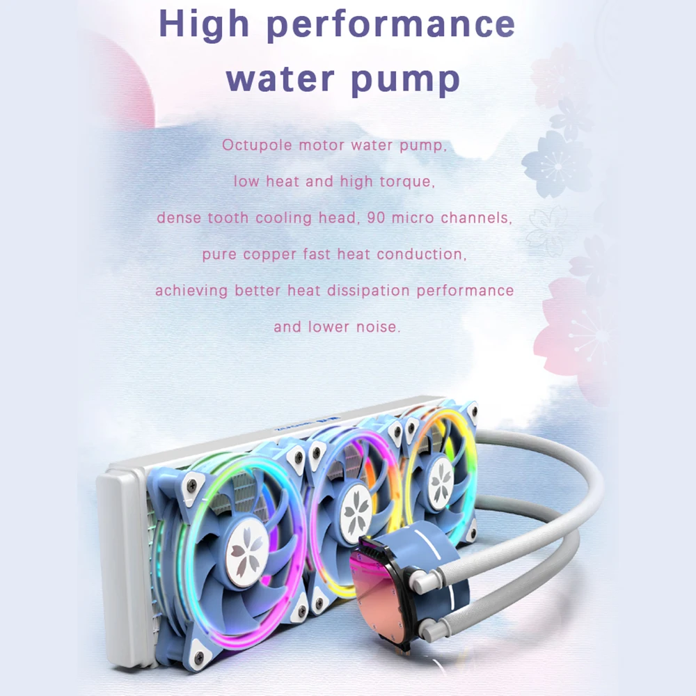 Встроенный радиатор с водяным охлаждением Yeston с высокопроизводительным водяным насосом, 2/ 3 вентилятора ARGB, Поддержка синхронизации материнской платы ARGB