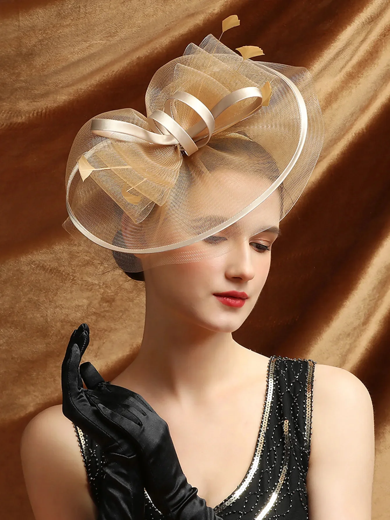 Fascinators шляпа повязка на голову женские перья Вуаль Сетка заколка для волос Кентукки дерби шляпы пряжа Коктейльные Вечерние головные уборы для женских волос