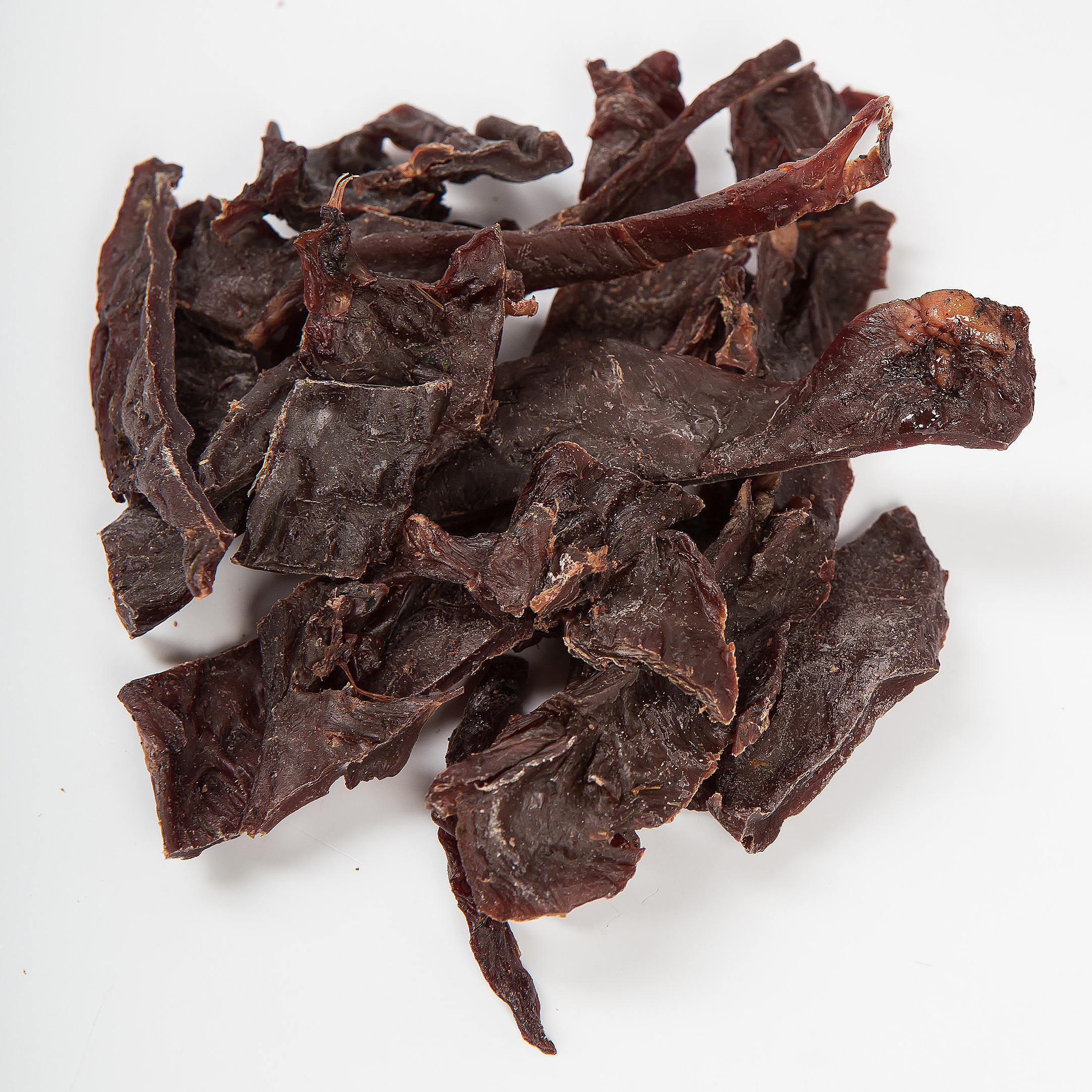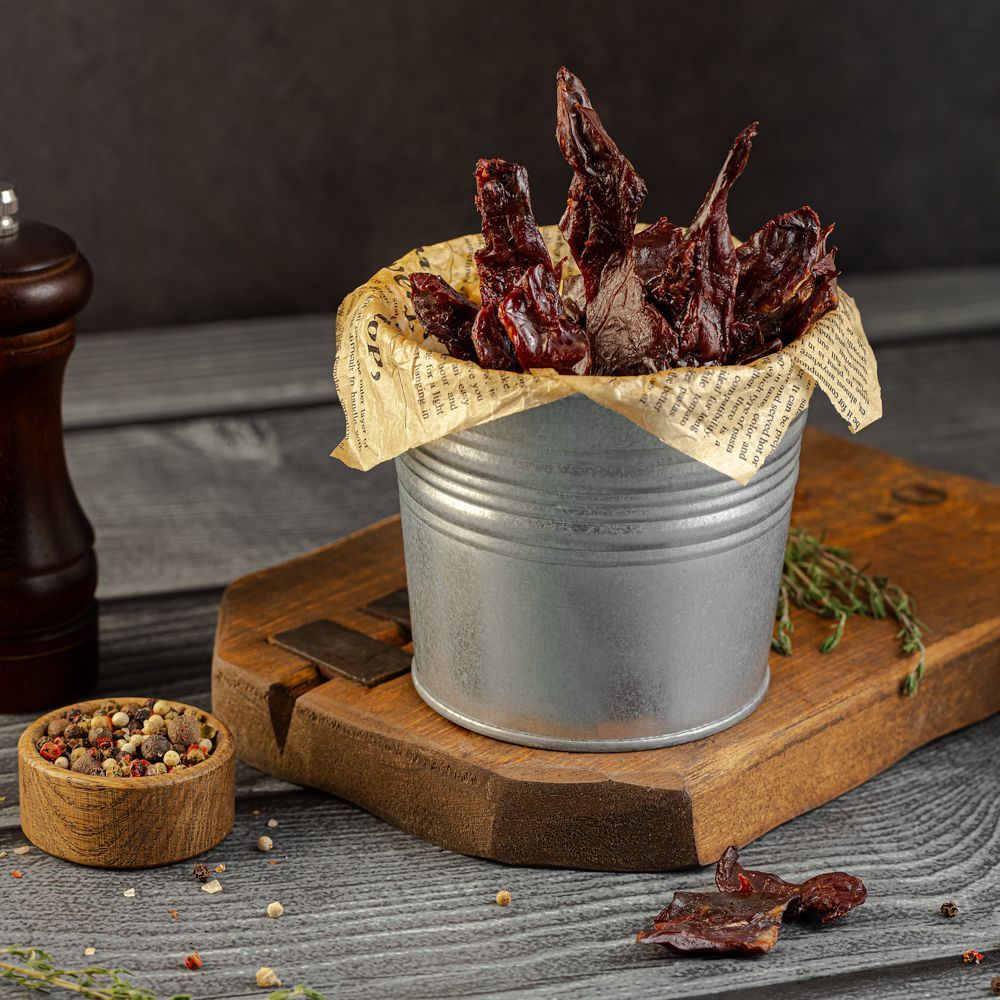 • 100 % натуральное вяленое мясо. Изготовлено из фермерского мяса. В составе только мясо, соль, специи и ни какого сахара. Также не содержит усилителей вкуса и консервантов.