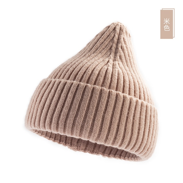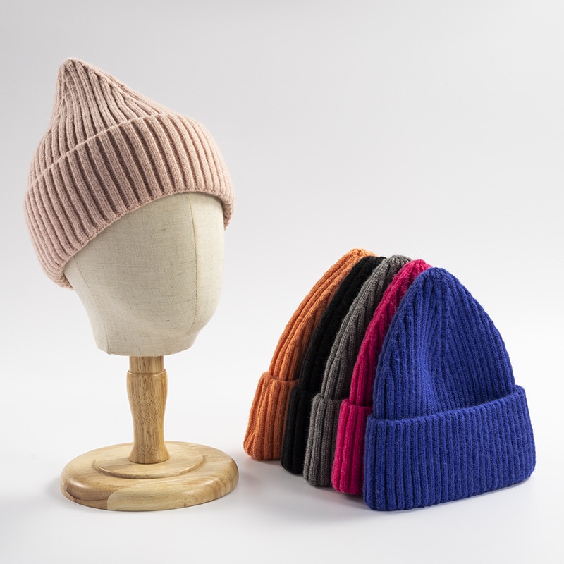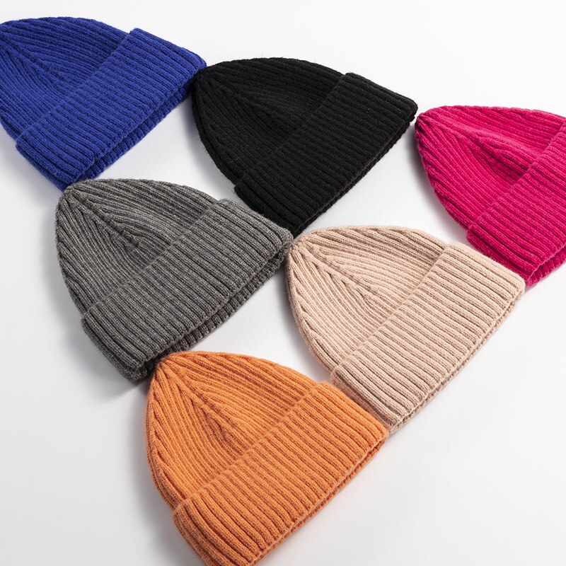 Вязаная Шапка-бини с острым носком, зимняя теплая шерстяная высокоэластичная кашемировая шерстяная шапка, модные однотонные шапки для мужчин и женщин, Кепка