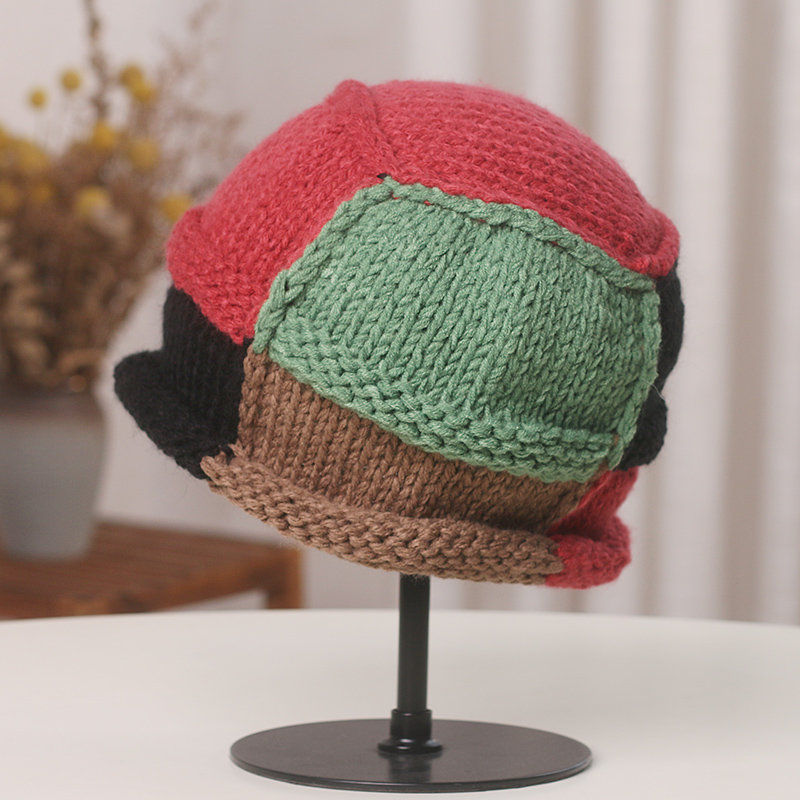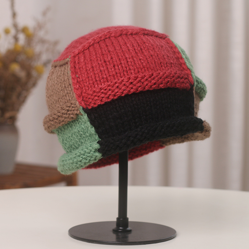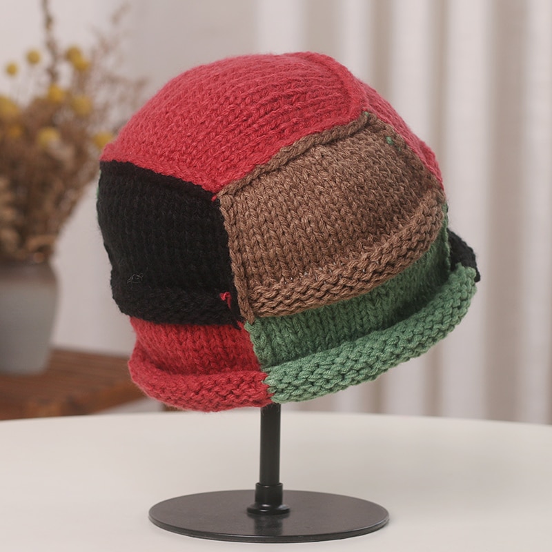 Вязаные шапки-бини контрастных цветов в японском стиле, защитная шапка ручной работы для защиты ушей, теплые женские шапки на осень и зиму