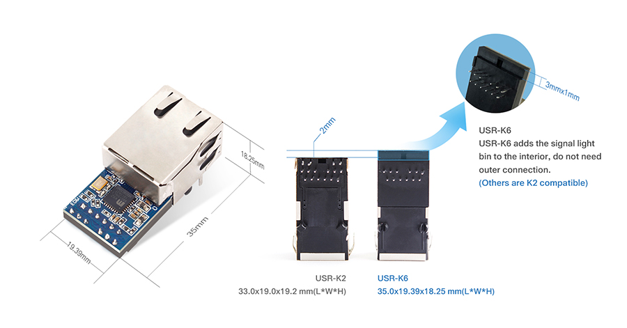 Подробная информация о встроенных модулях Ethernet USR-K6