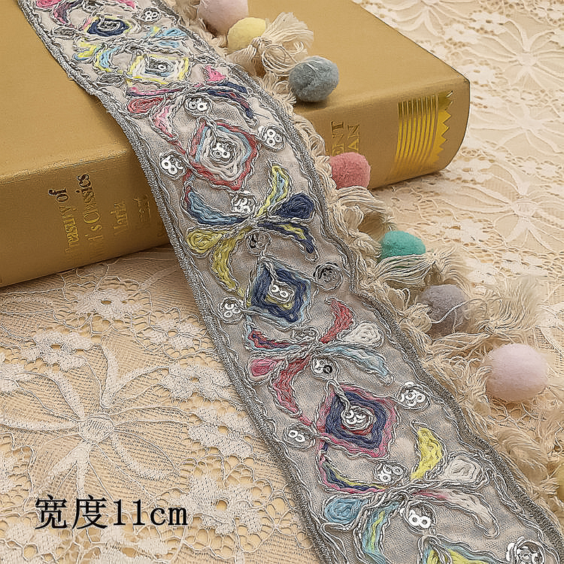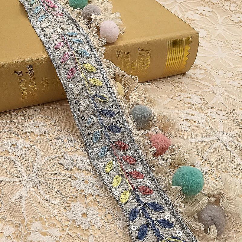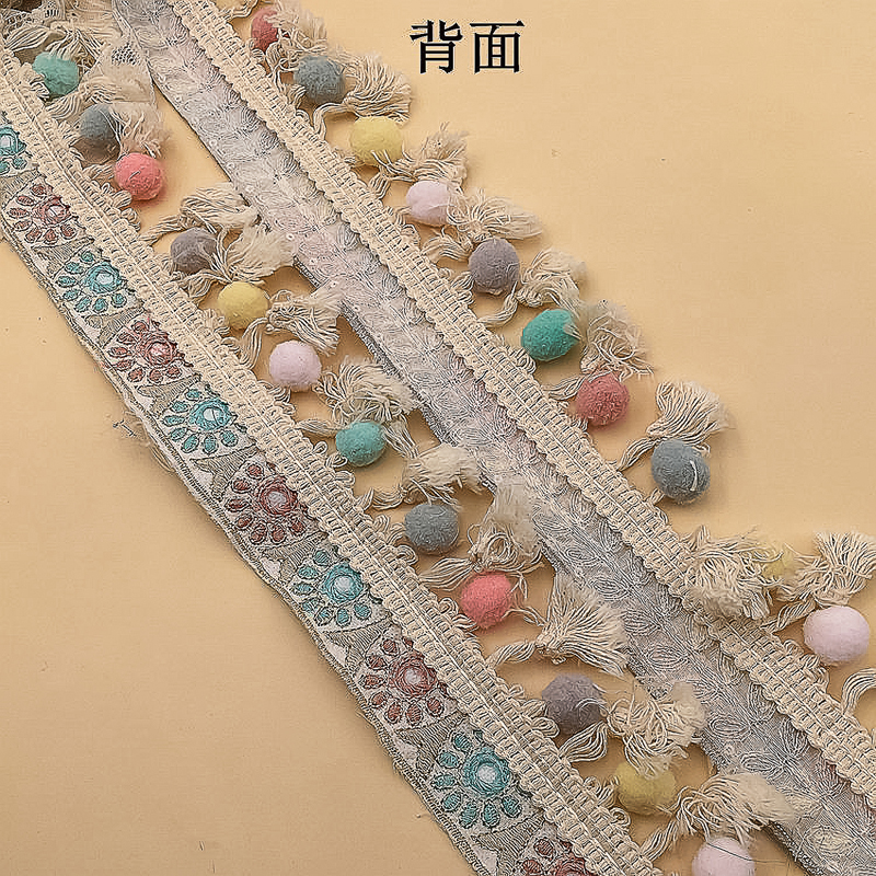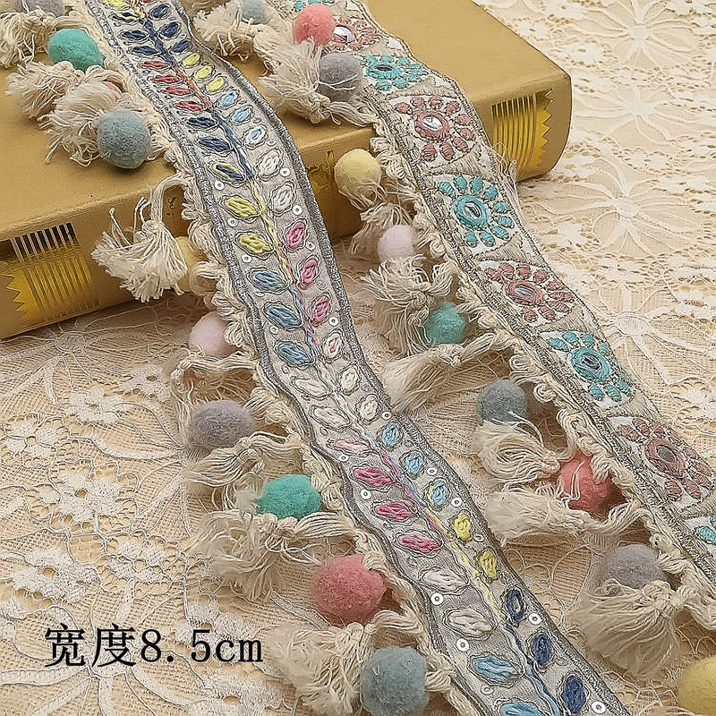 Вышитая Этническая жаккардовая отделка бахромой с кисточкой помпоном Цветочная кружевная занавеска с кисточкой для рукоделия товары для шитья
