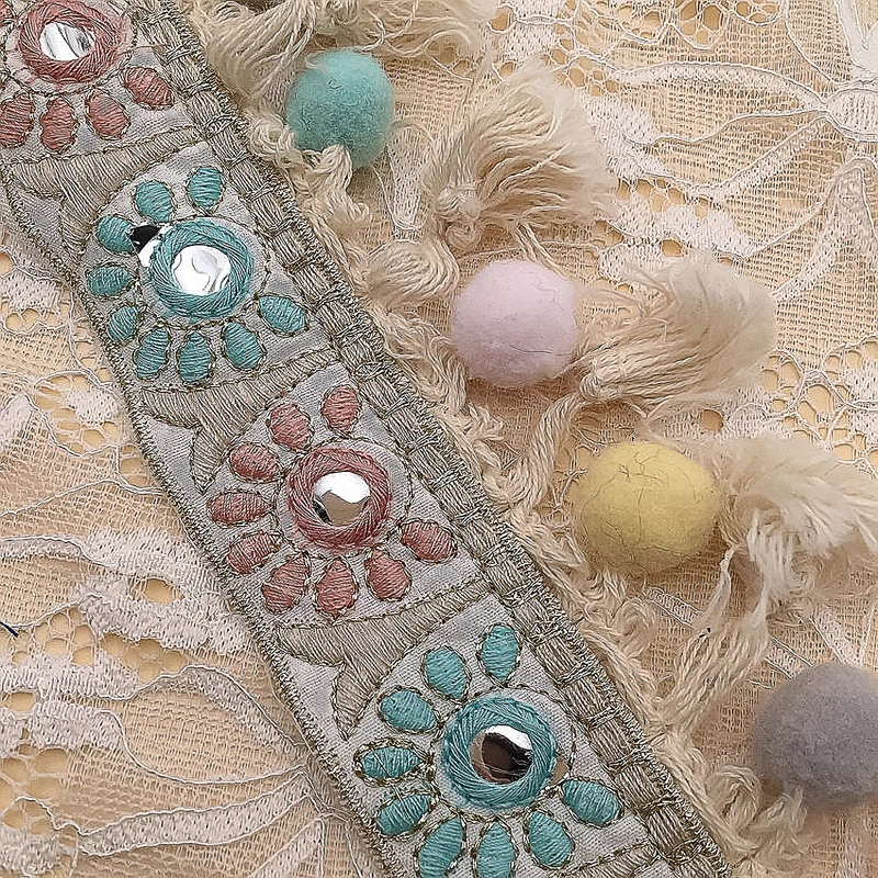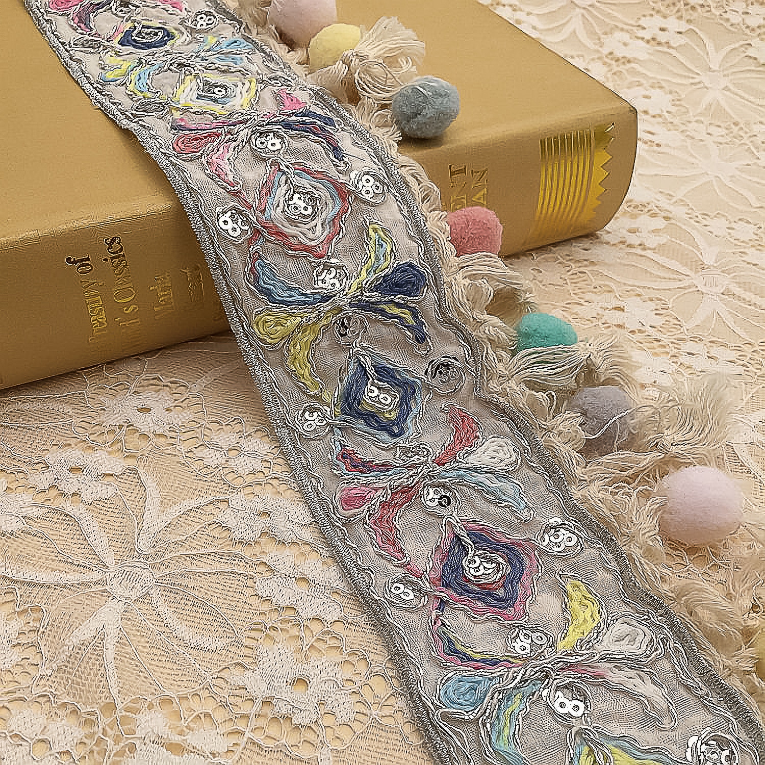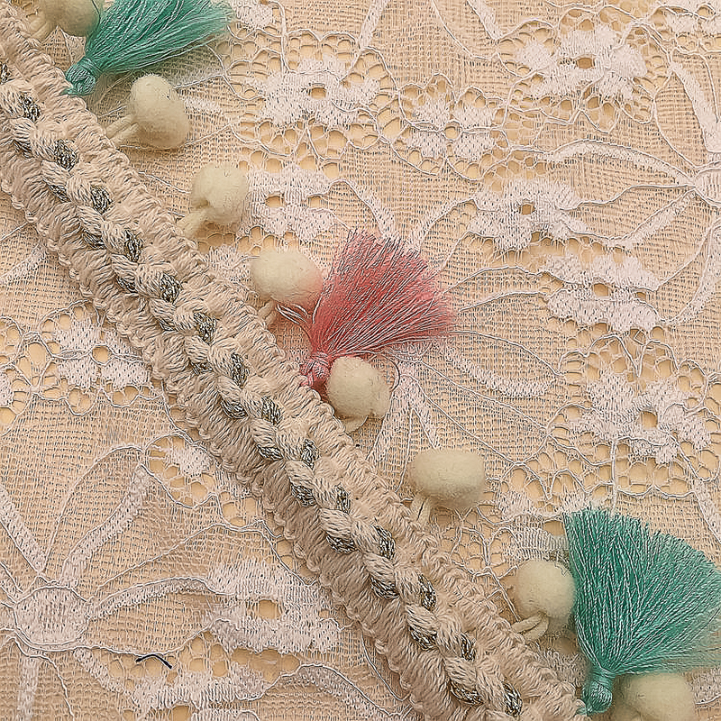 Вышитая Этническая жаккардовая бахрома с кисточкой и помпоном Цветочные кружевные занавески с кисточкой для швейных принадлежностей своими руками