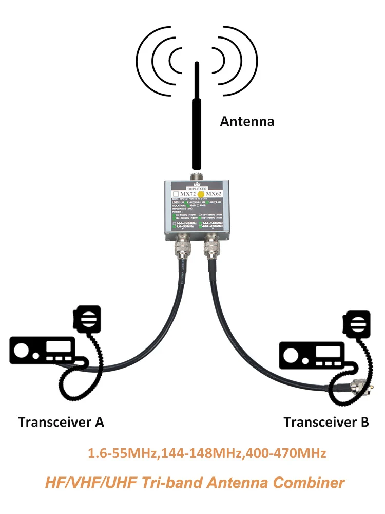 -Антенна и приемопередатчики должны соответствовать частотным диапазонам MX62 антенного комбинатора