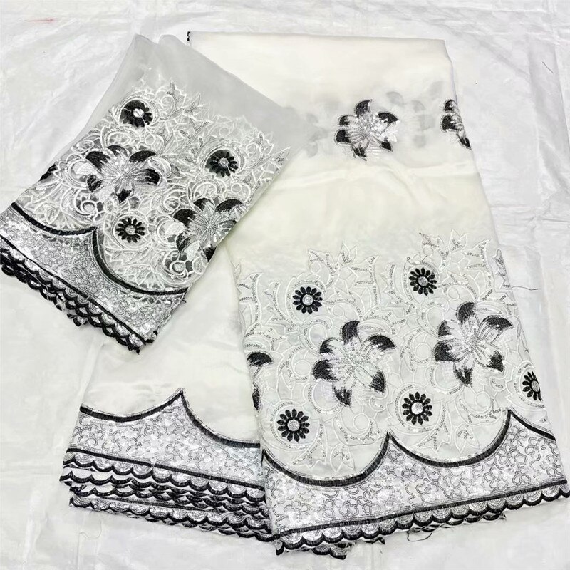 Высокое качество 5 + 2 ярдов африканская кружевная ткань с чистой Кружева блесток и камни вышитые Джордж кружевная ткань для свадьбы