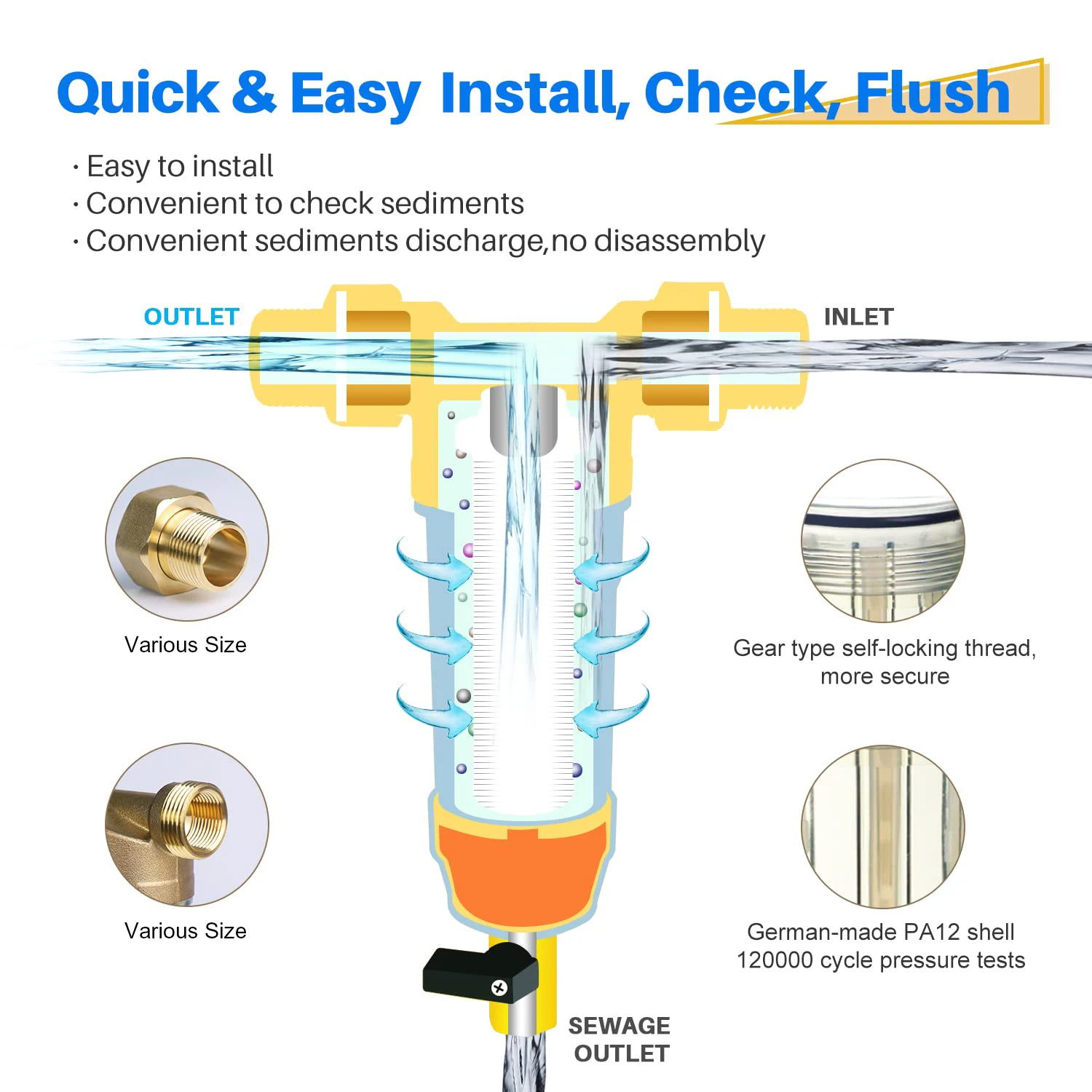 ⚠️ 𝗣𝗲𝗮𝗮𝘀𝗲 𝗻𝗲 𝗲 Система работает при 32-104 ℉ ( 0-40 ℃), чрезмерная температура приведет к разрыву системы.💧𝗙𝗶𝗿𝘀𝗹𝗹𝗶𝗲 𝗼𝗱𝗲𝗳𝗳𝗲𝗻𝘀𝗲 𝗲 filter Фильтр размером пор 40 микрон может эффективно фильтровать твердые частицы, ил, отложения, ржавчину, взвешенные твердые частицы и другие загрязнители в воде, защищая водоснабжение вашего дома.