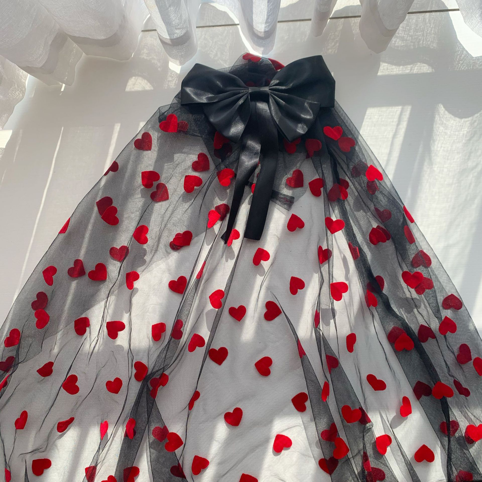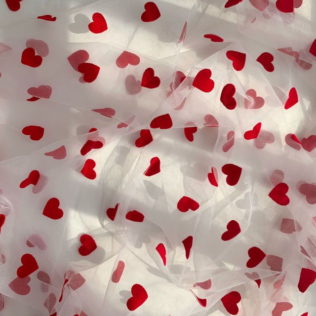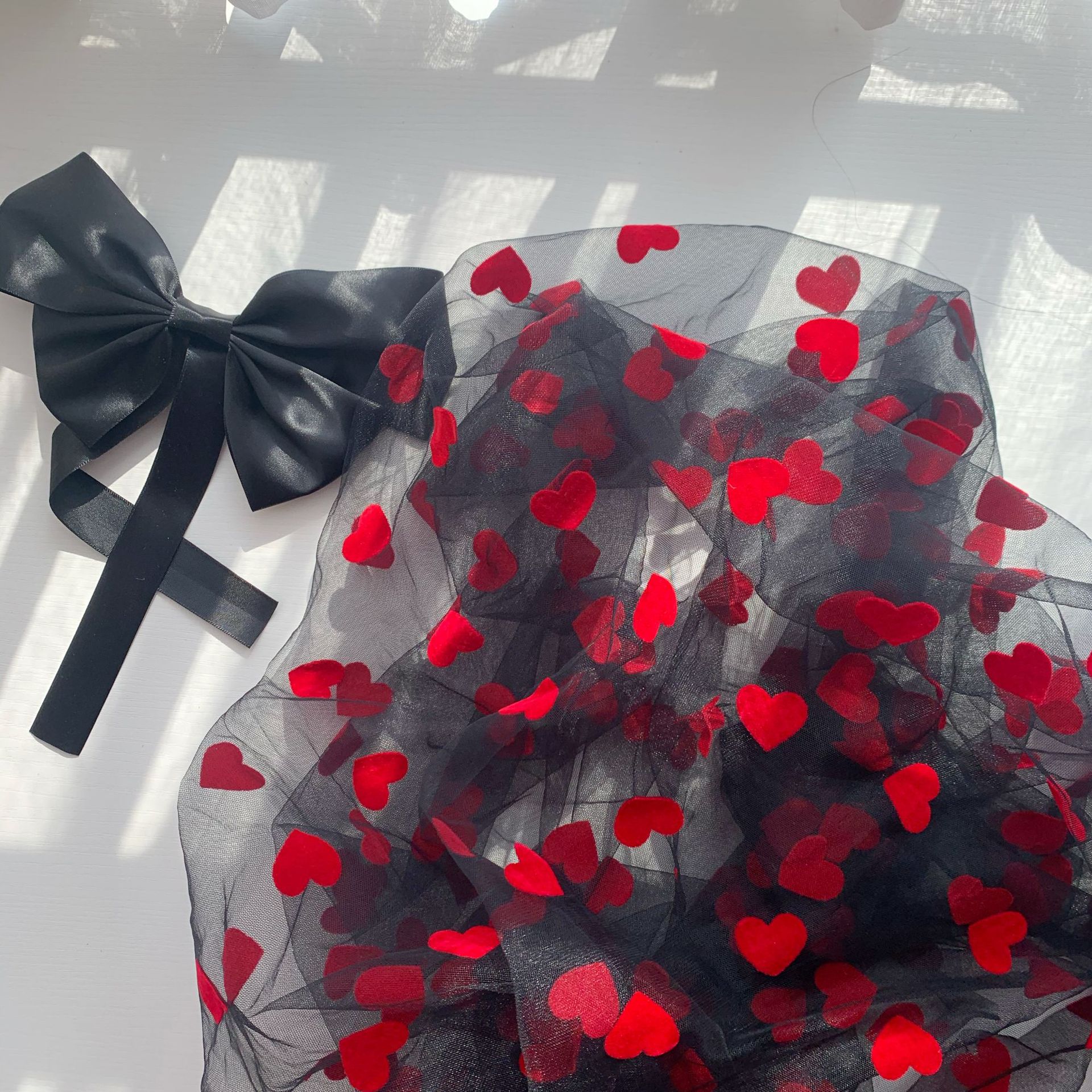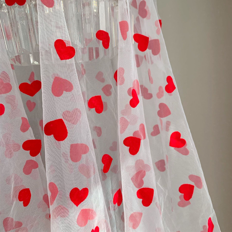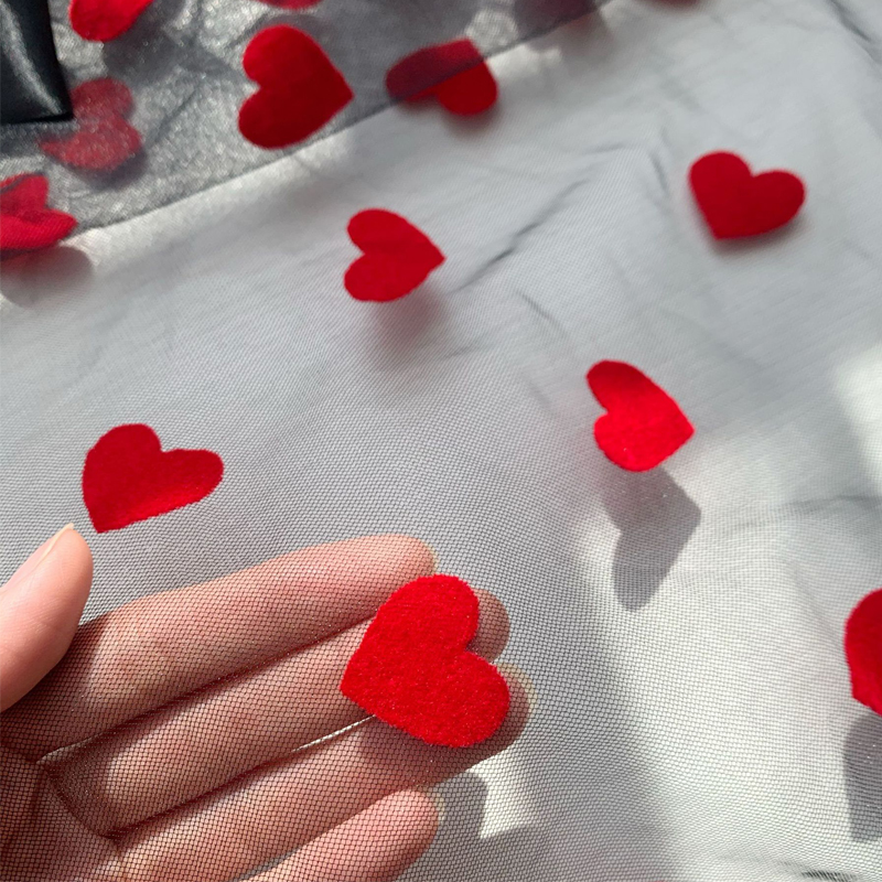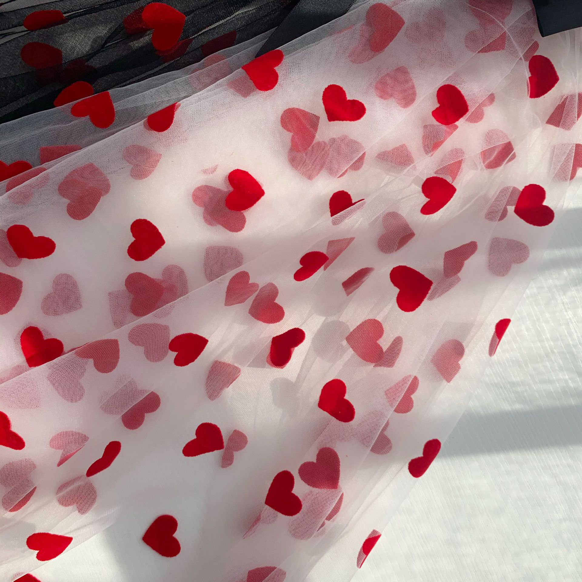 Высококачественная сетка в горошек с красным сердцем из гипюра, кружевная ткань для одежды, свадебное украшение, швейная сетка, 0,5 ярдов