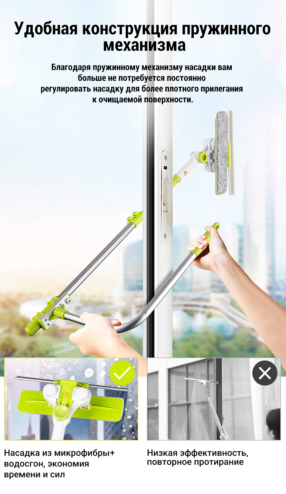 Высококачественная щетка для мытья окон для мытья окон Ракель из микрофибры Выдвижной робот для мытья окон