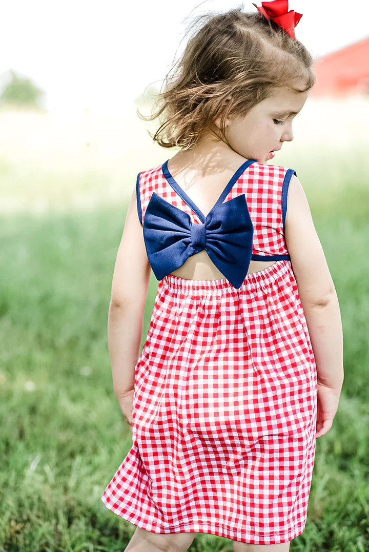 Высококачественное платье/наряды для мальчиков и девочек 4 июля, комплекты одежды с вышивкой в красную клетку для маленьких девочек