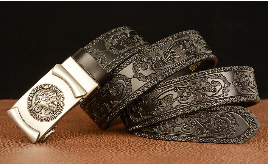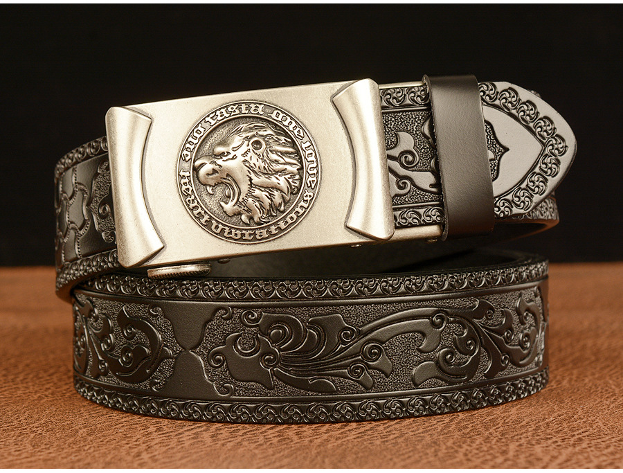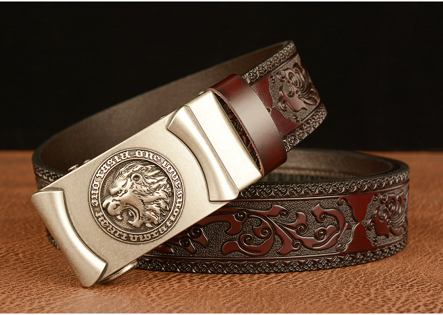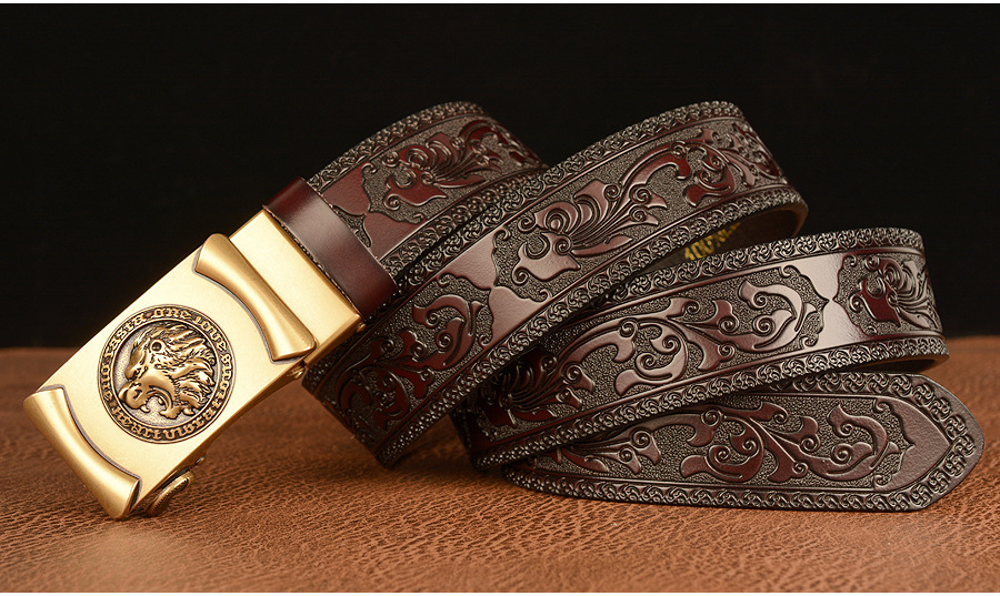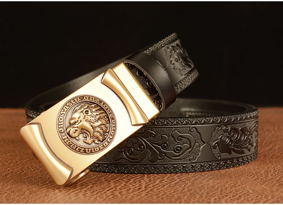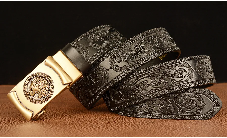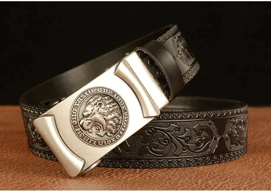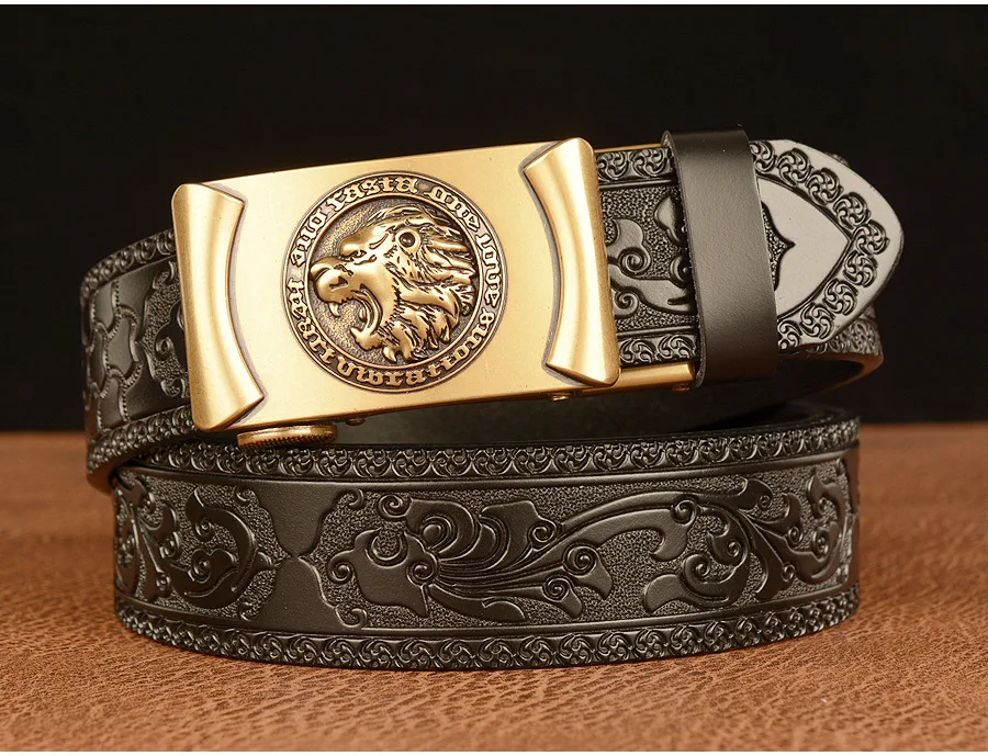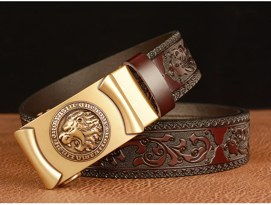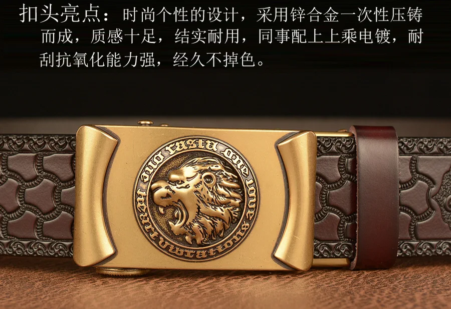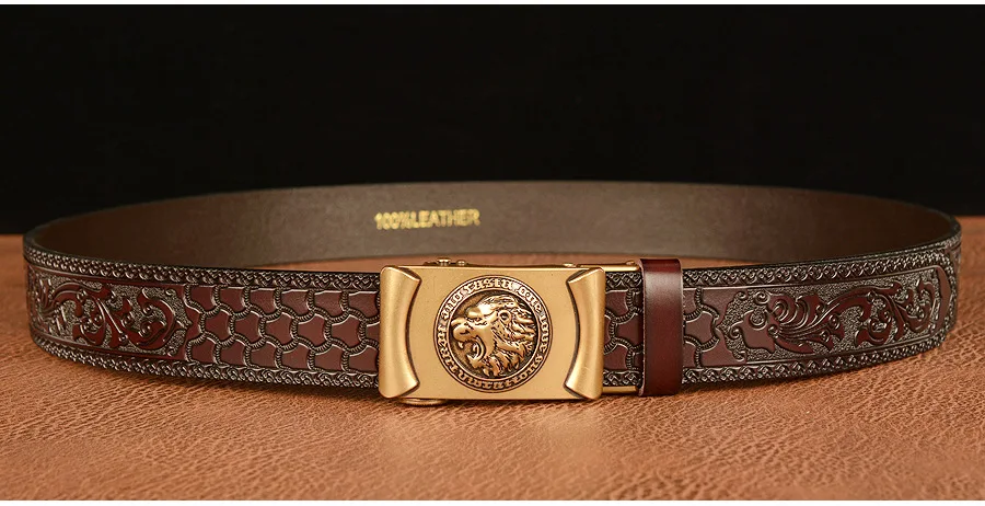 Высококачественные мужские львиные узоры, дизайнерские сплавы, автоматическая пряжка, пояс из натуральной кожи, ремни из воловьей кожи для мужских джинсов, модные винтажные