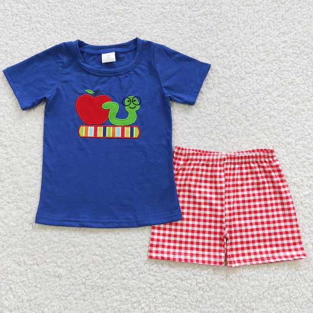 Высокое качество Снова в школу синие вышитые яблочные наряды комплекты одежды для маленьких девочек Детская и детская одежда комплекты одежды