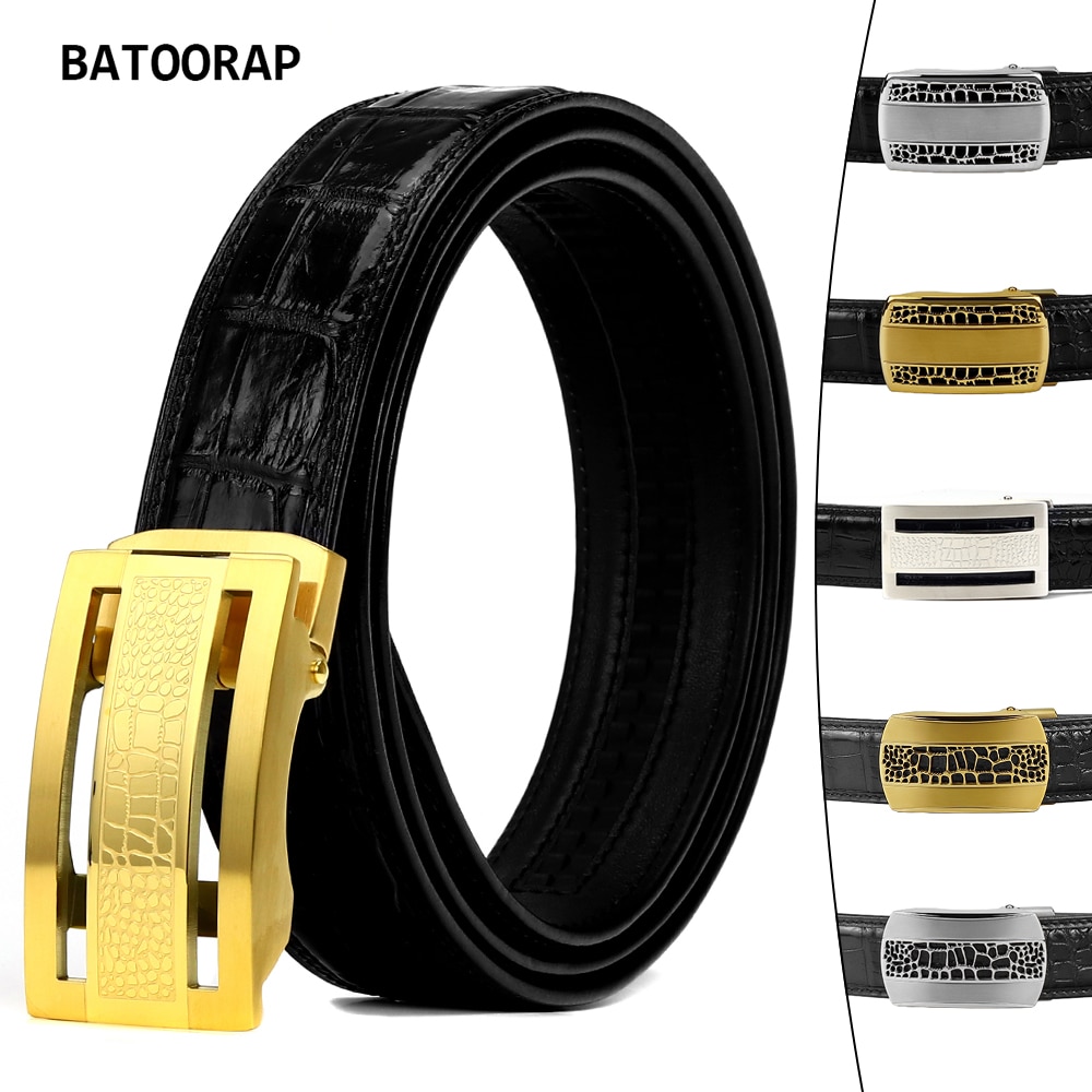 Высококачественный брендовый ремень BATOORAP из крокодиловой кожи, Роскошный дизайнерский мужской ремень из нержавеющей стали с автоматической пряжкой, черный, коричневый