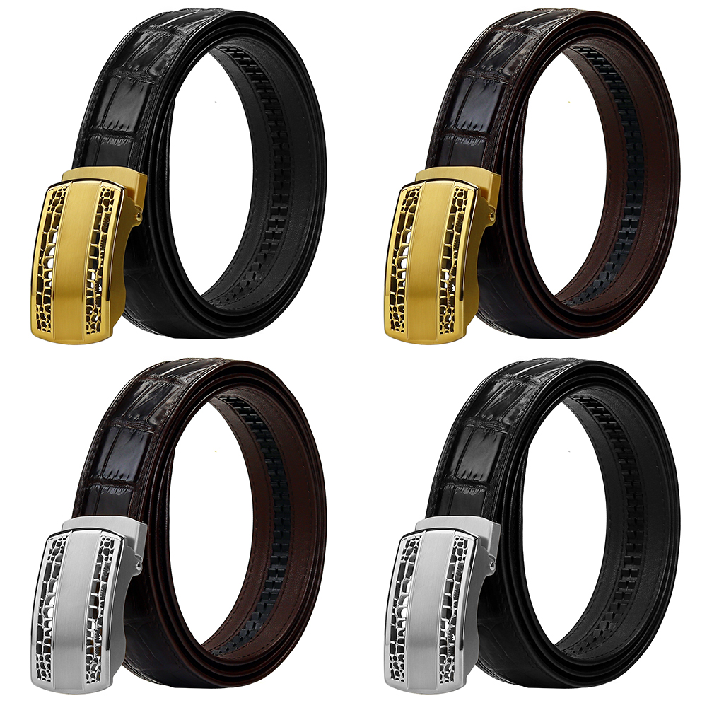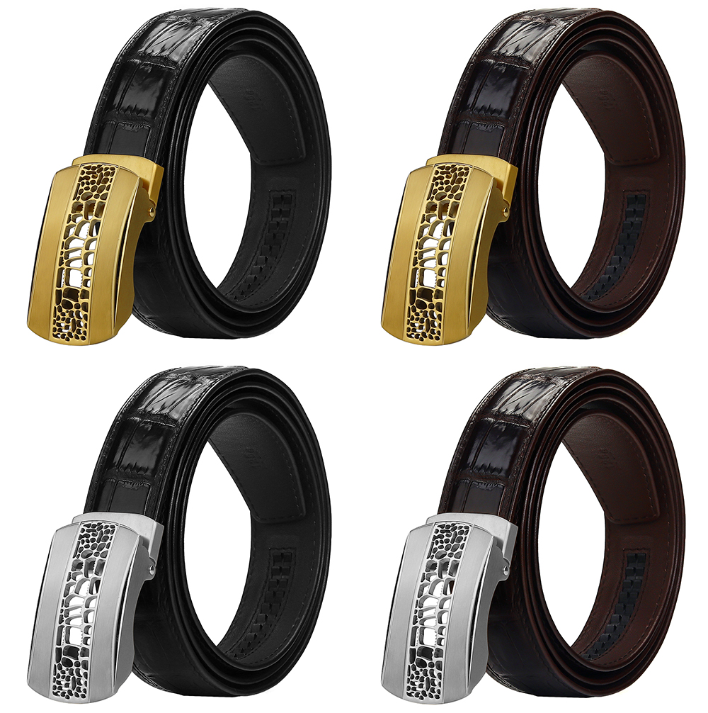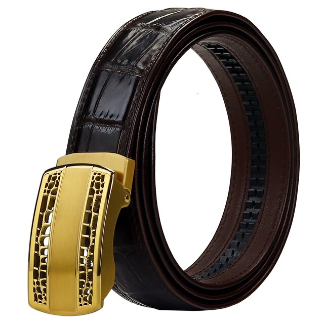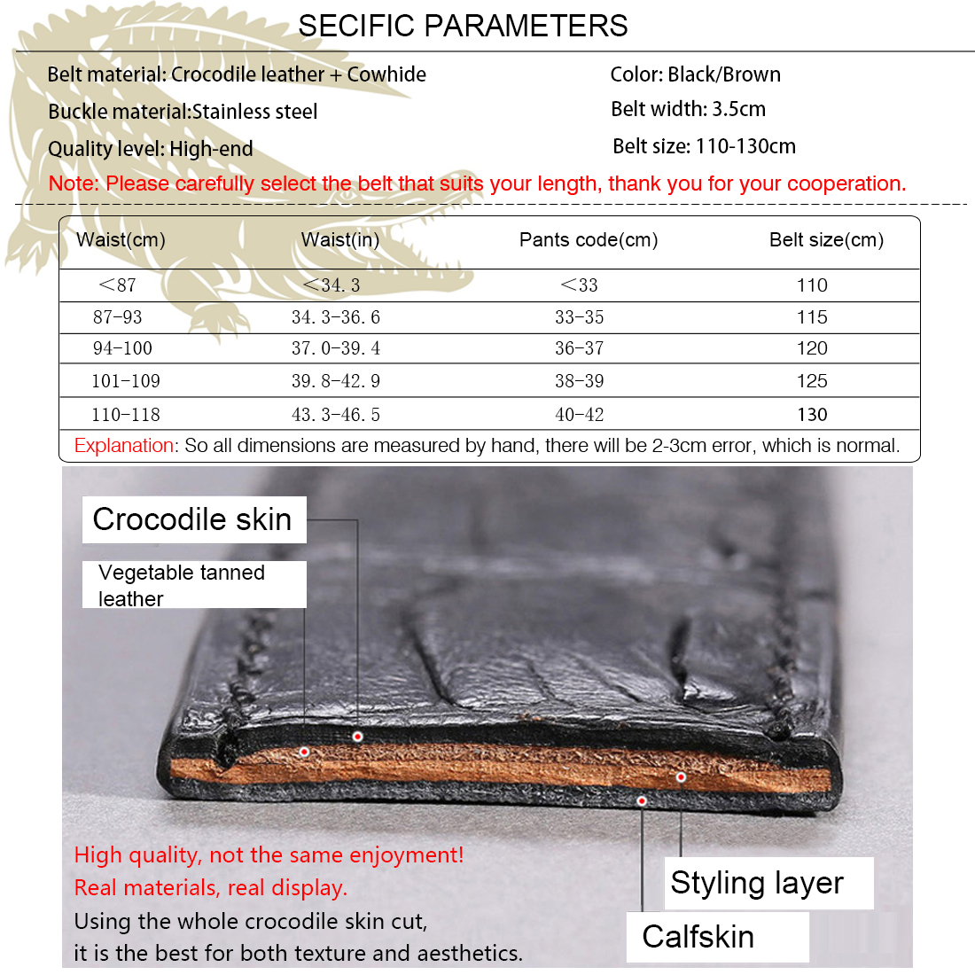 【МАКСИМАЛЬНАЯ ДОЛГОВЕЧНОСТЬ】-Материал пряжки: Пряжка из нержавеющей стали с гальваническим покрытием высокой плотности. Материал ремня: поверхностный слой (Высококачественная кожа крокодила) Средний слой (фиксированная форма ремня, без коры) Нижний слой (импортная телячья кожа) состоит из трех частей, все из которых являются высококачественными кожаными материалами, которые производятся с помощью десятков процессов. Хороший продукт, одного достаточно.