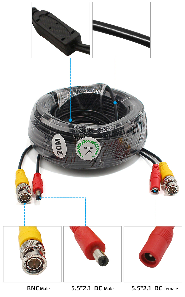 Видео кабель питания позволит вам передавать видео сигнал и питания постоянного тока для всех видов камер безопасности. Готов к подключению и воспроизведению. Каждый кабель поставляется с BNC Видео разъем и 2,1 мм Центр положительной клемме штепсельную вилку в каждом конце.