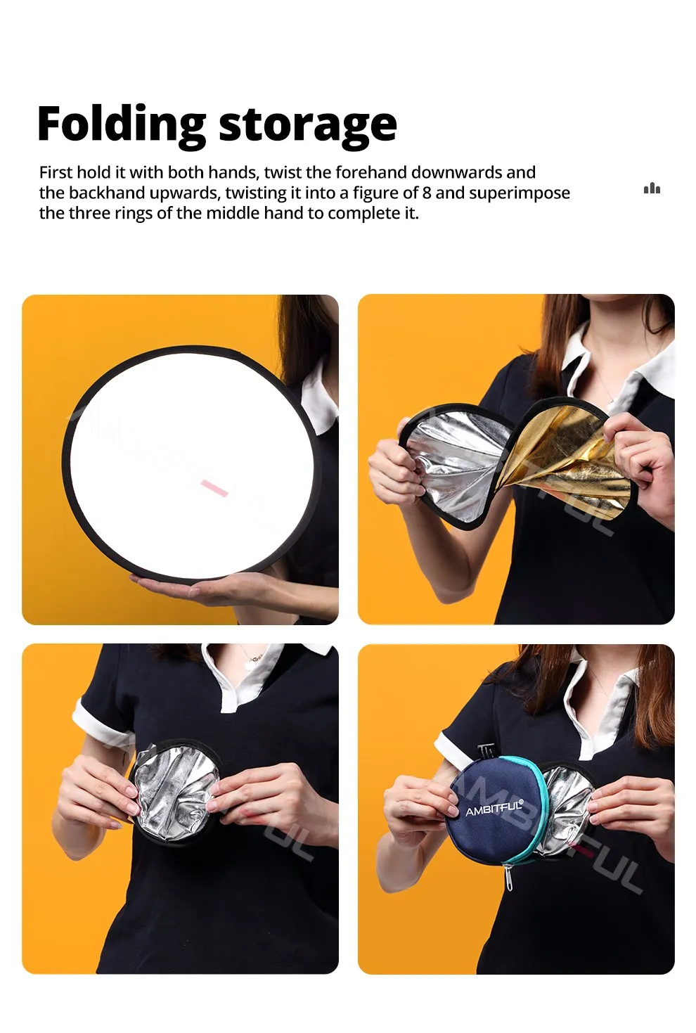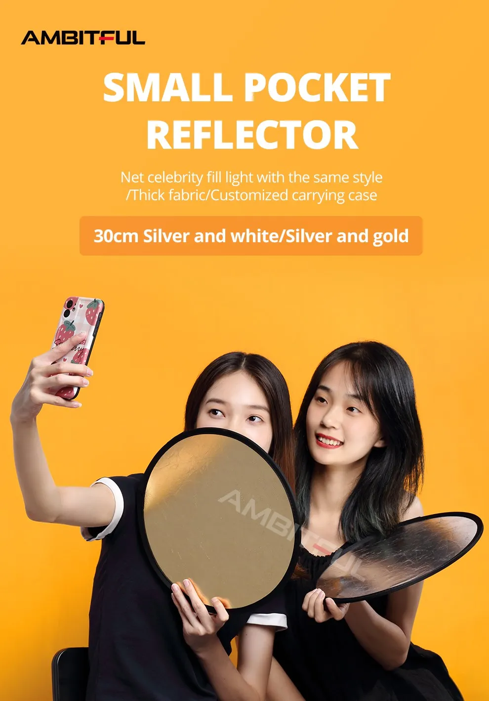 Высококачественный Круглый отражатель AMBITFUL для уличной и внутренней съемки, 2 в 1, золотистый, серебристый, белый, 30 см